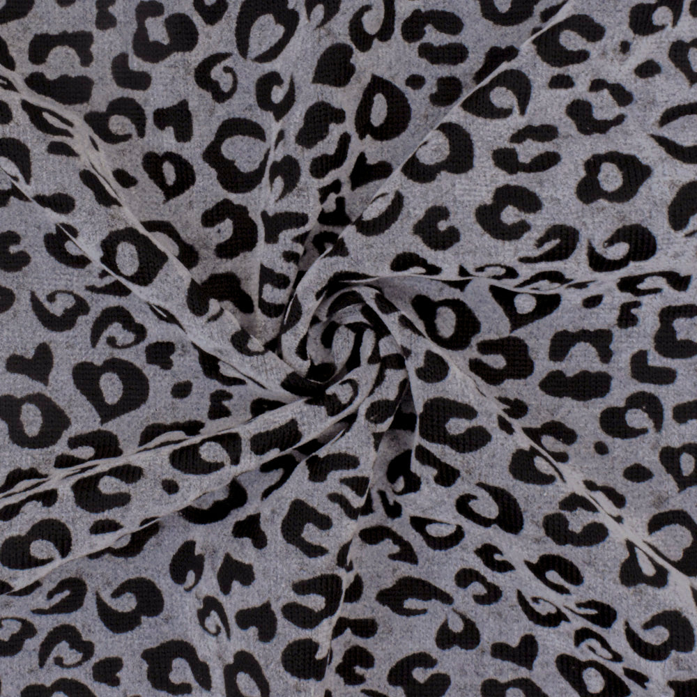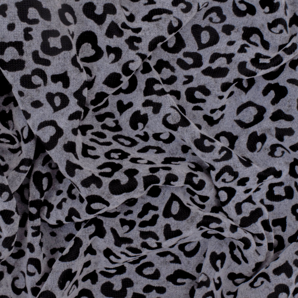 Gray-Black Leopard Velvet Flocked Stretch Jersey Knit Fabric