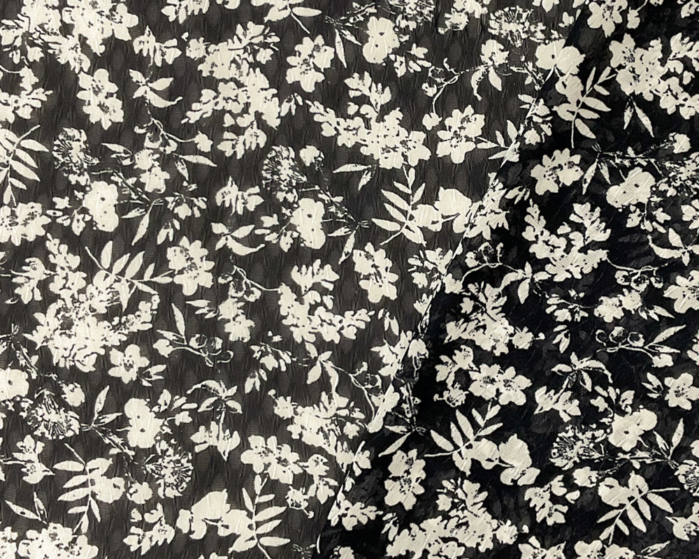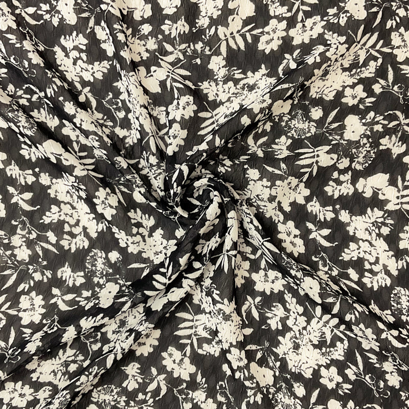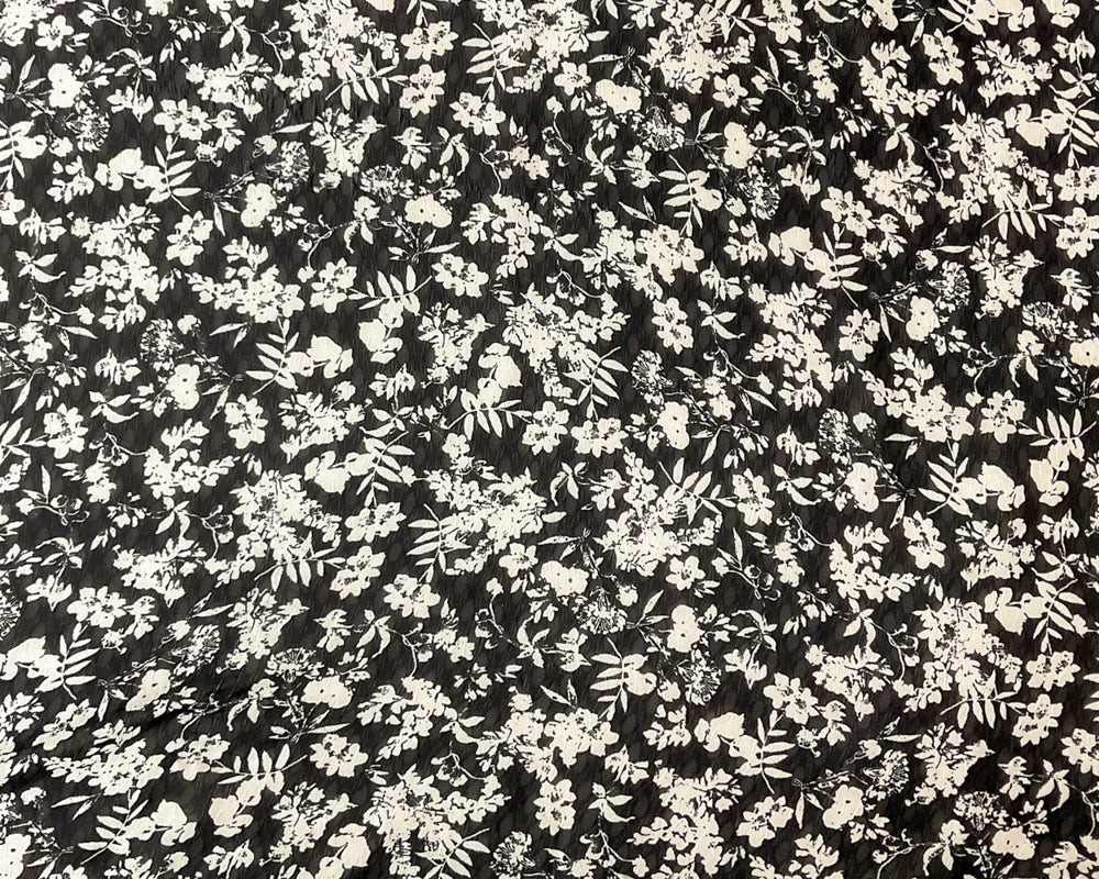 Black-Ivory Poly Floral Printed Ogee Shape Dobby Chiffon Woven Fabric