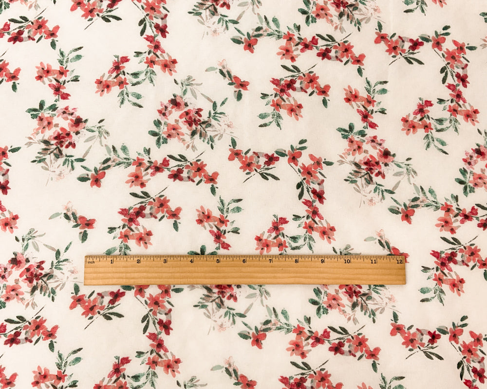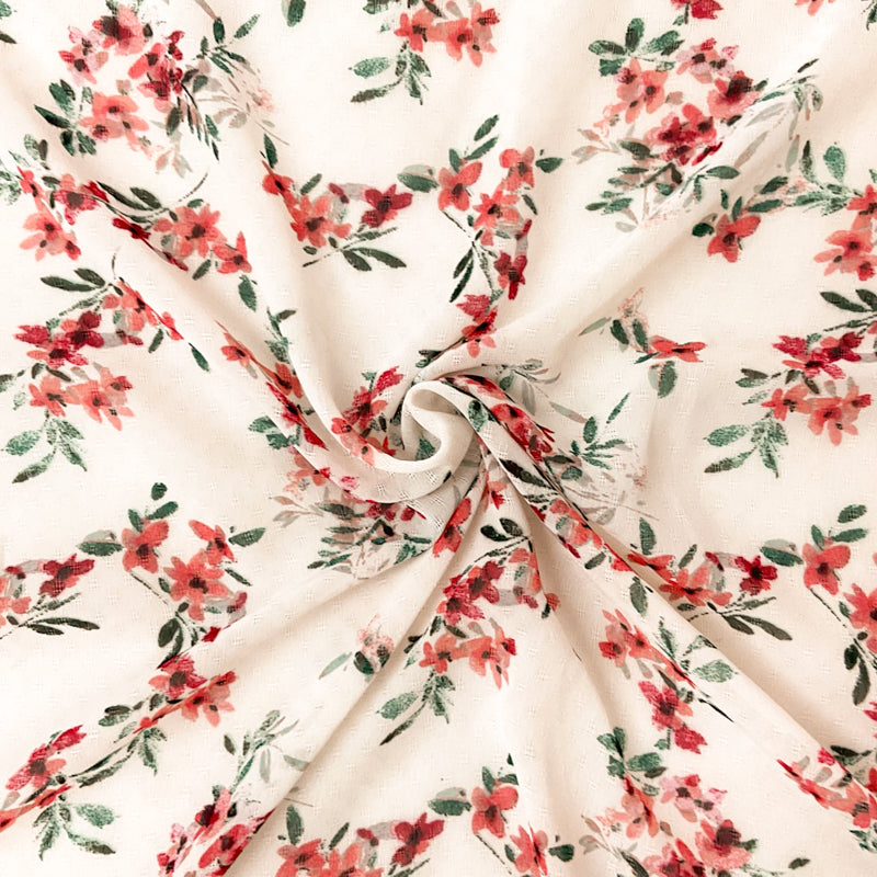 Ivory-Red-Multi Poly Floral Printed Dobby Chiffon Woven Fabric