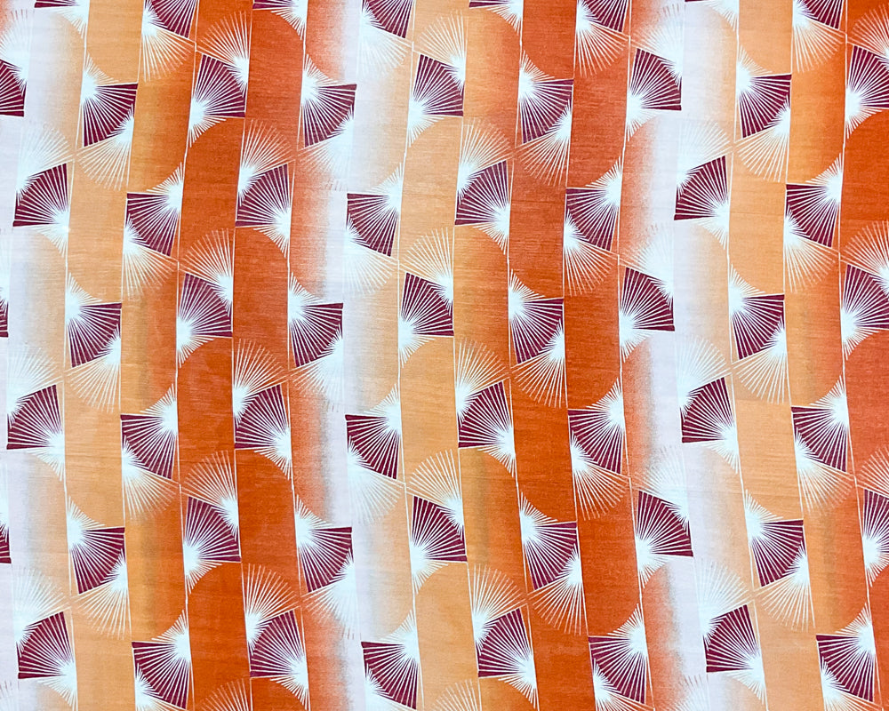 Orange-Red-White Poly Abstract Printed Chiffon Woven Fabric