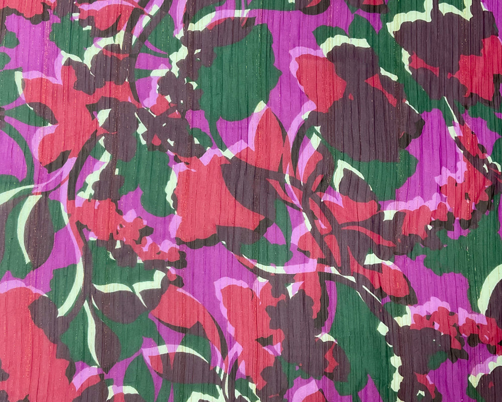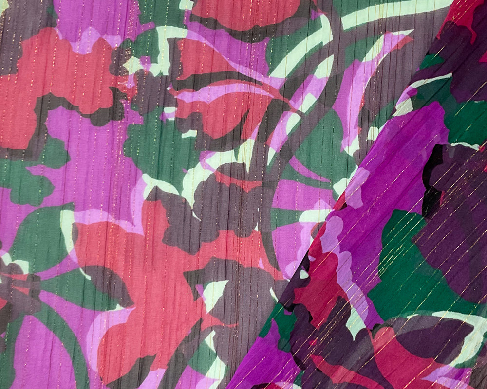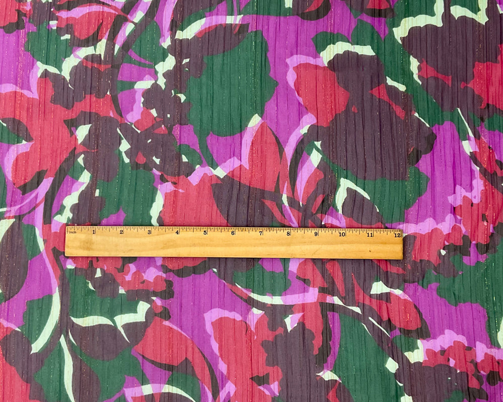 -Purple-Red-Multi Poly Floral Metallic Printed Yoryu Chiffon Woven Fabric