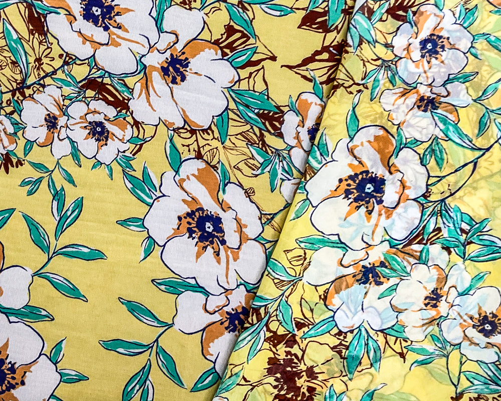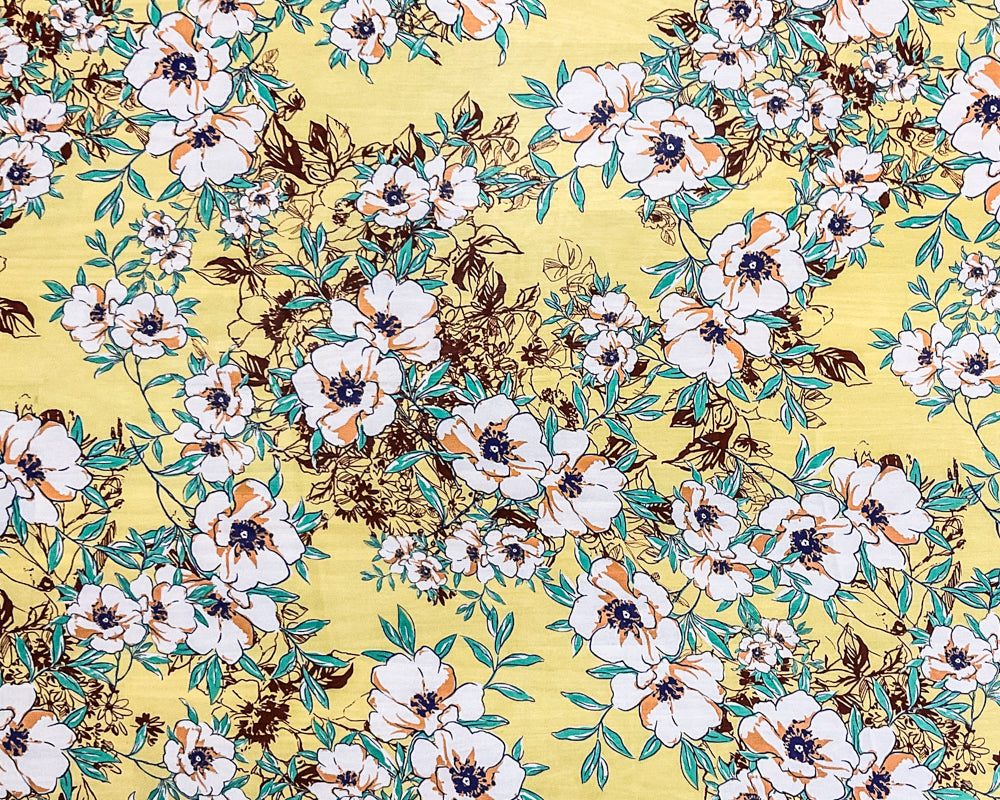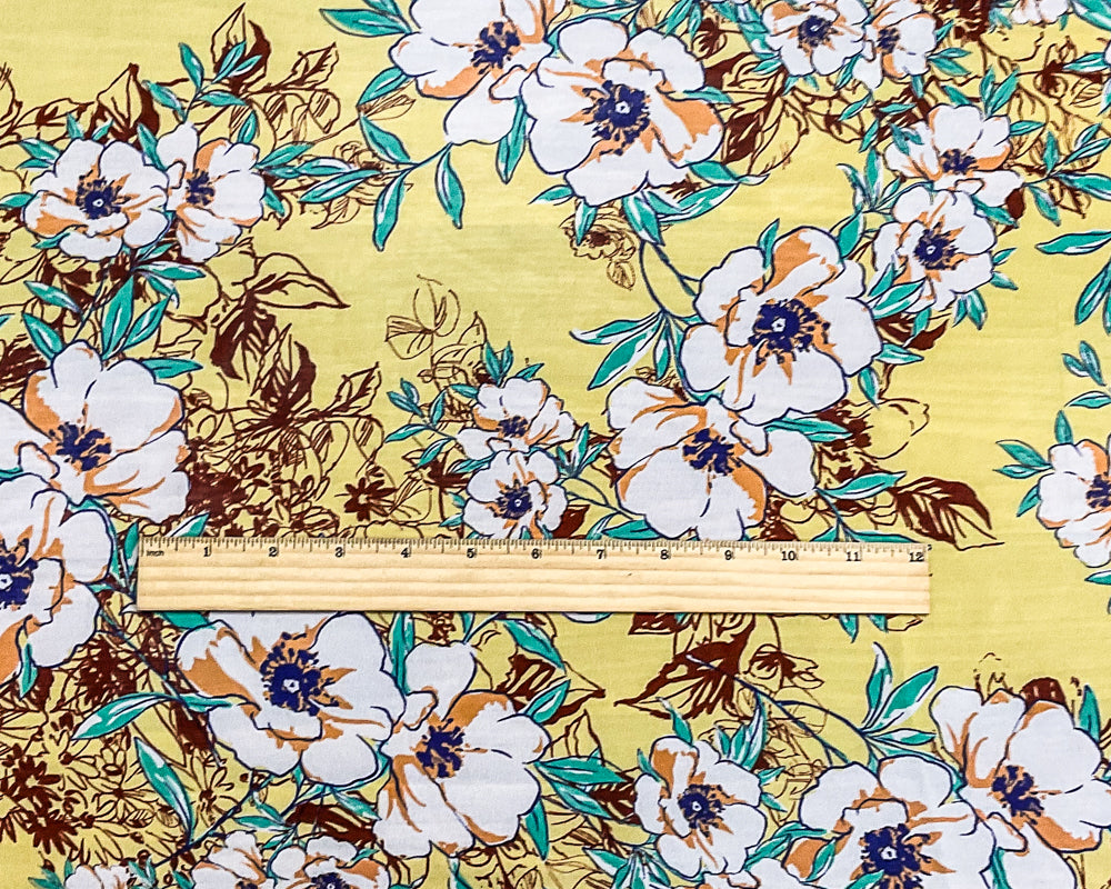 Yellow-Green-Multi Poly Floral Printed Chiffon Woven Fabric