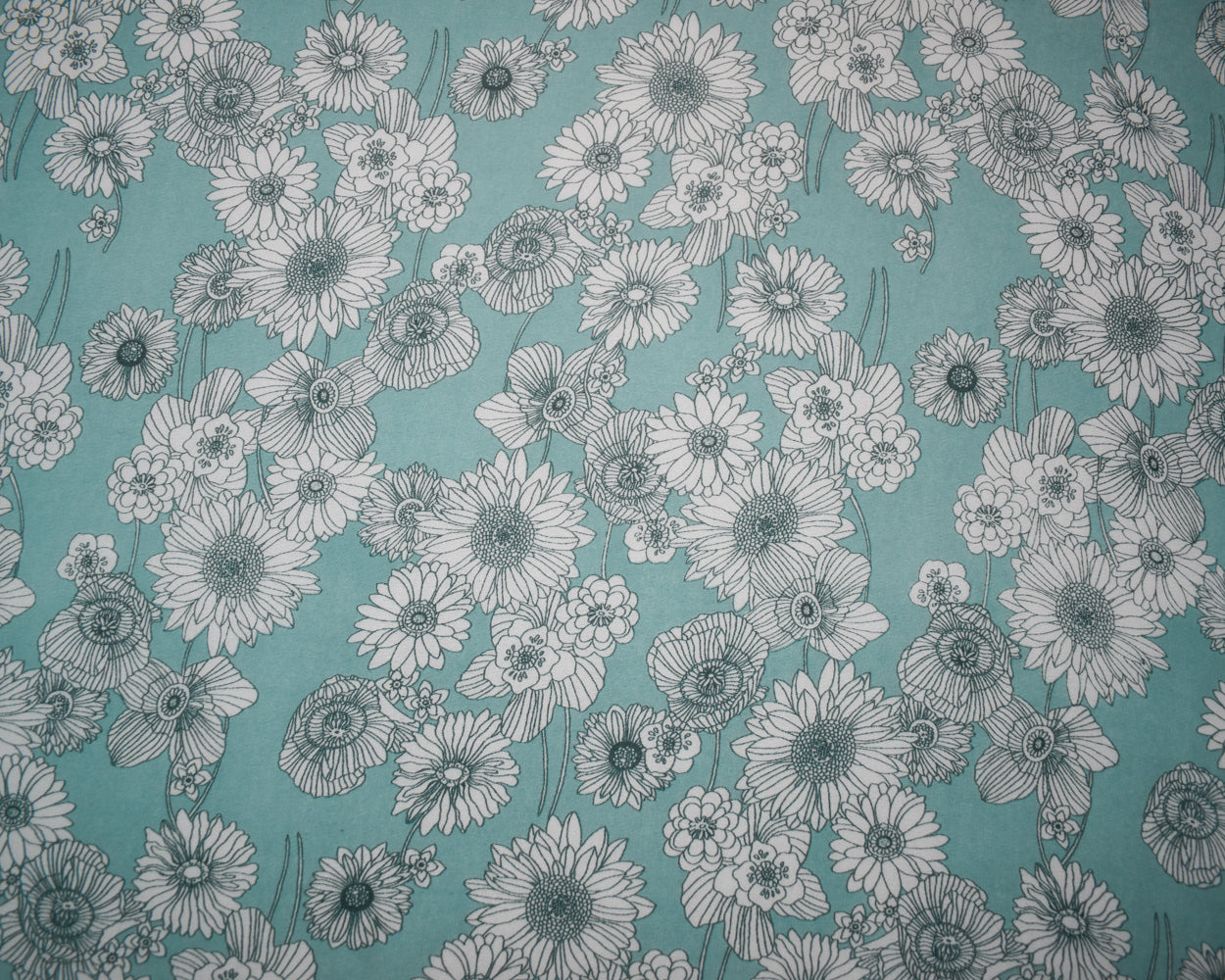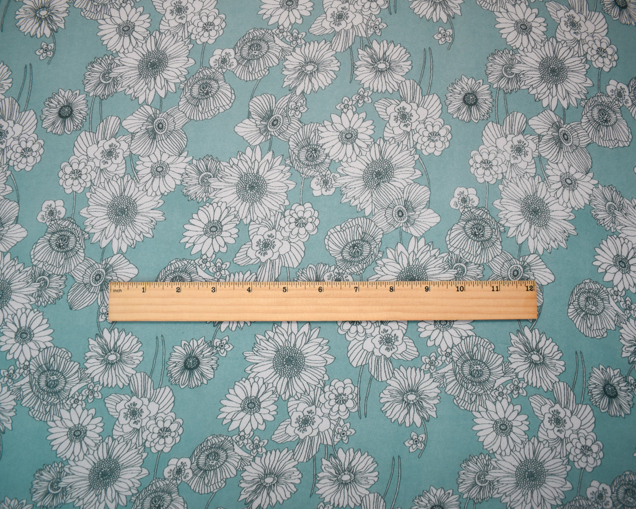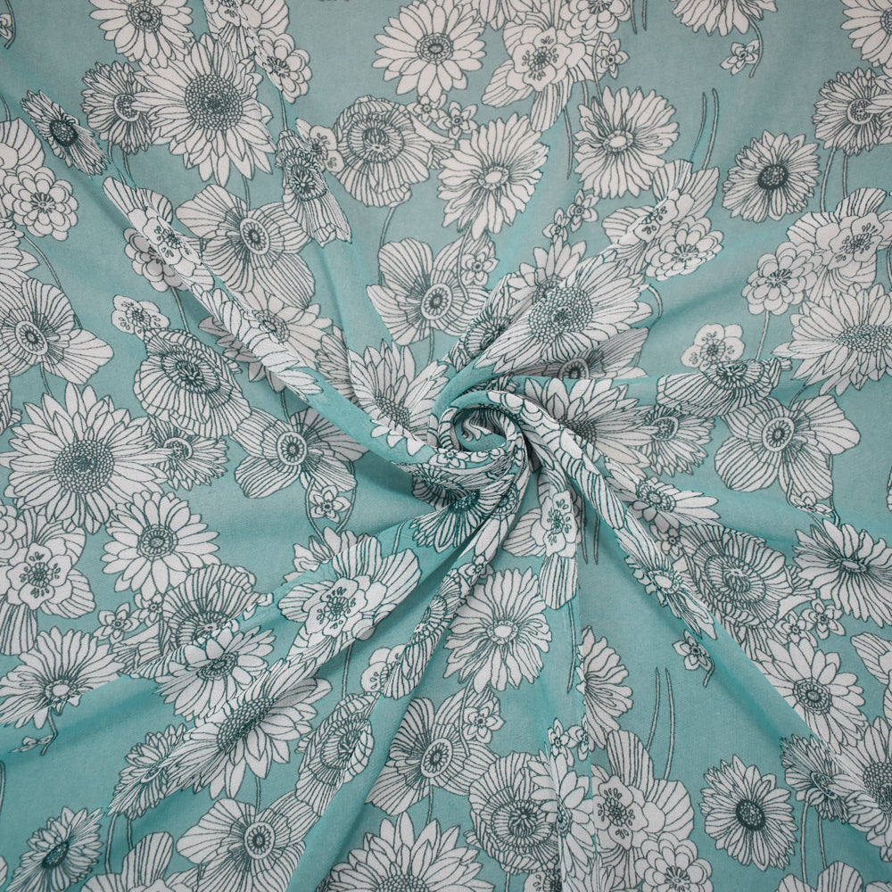 1 1/2 YD PC-Turquoise-White Poly Floral Printed Pebble Chiffon Woven Fabric