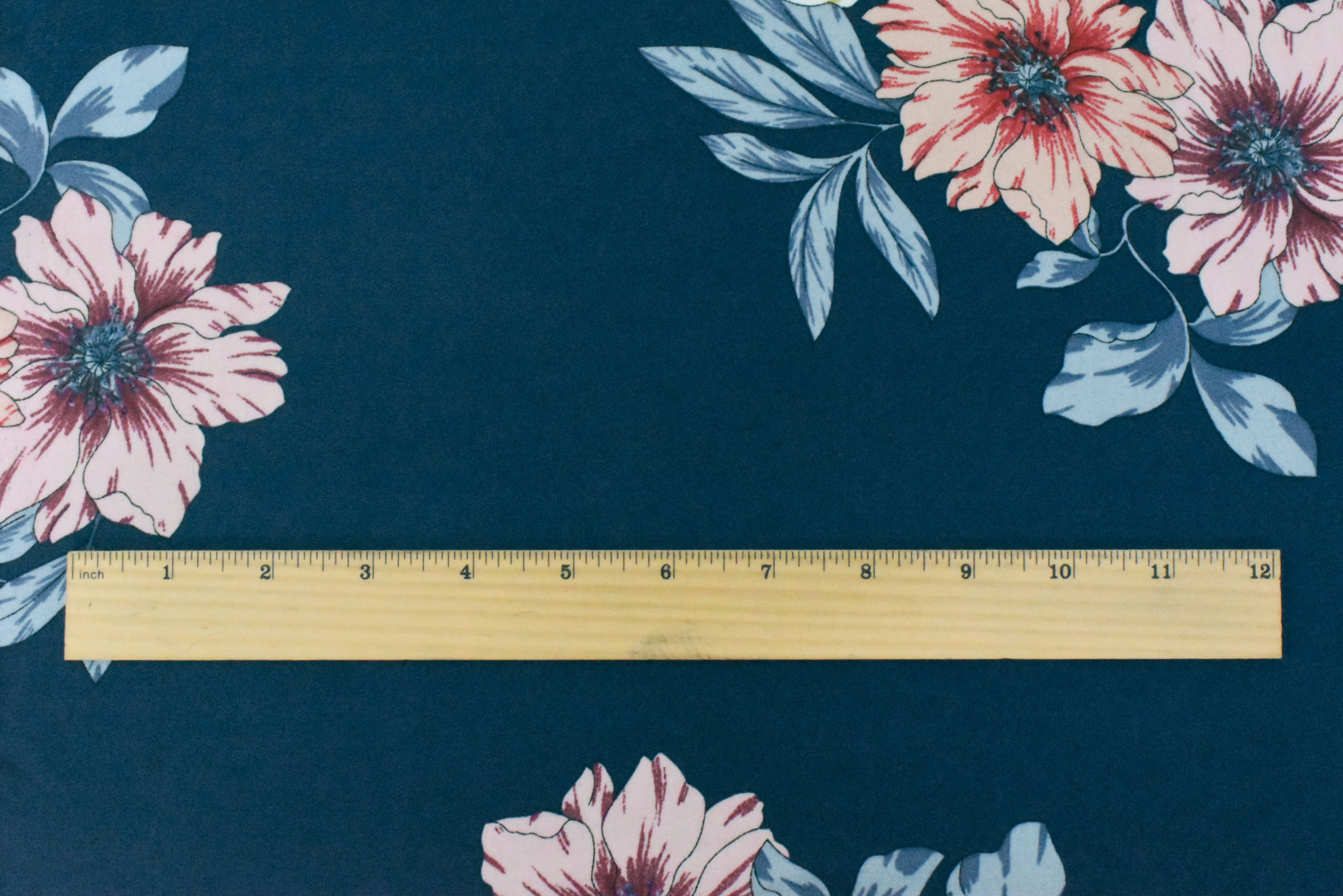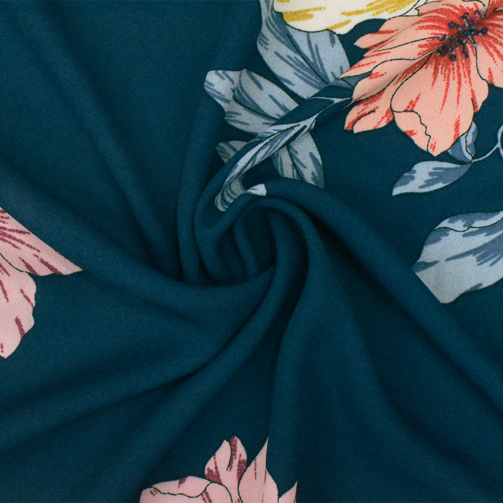 1 1/4 YD PC-Blue-Pink-Multi Floral Printed Poly Georgette Woven Fabric