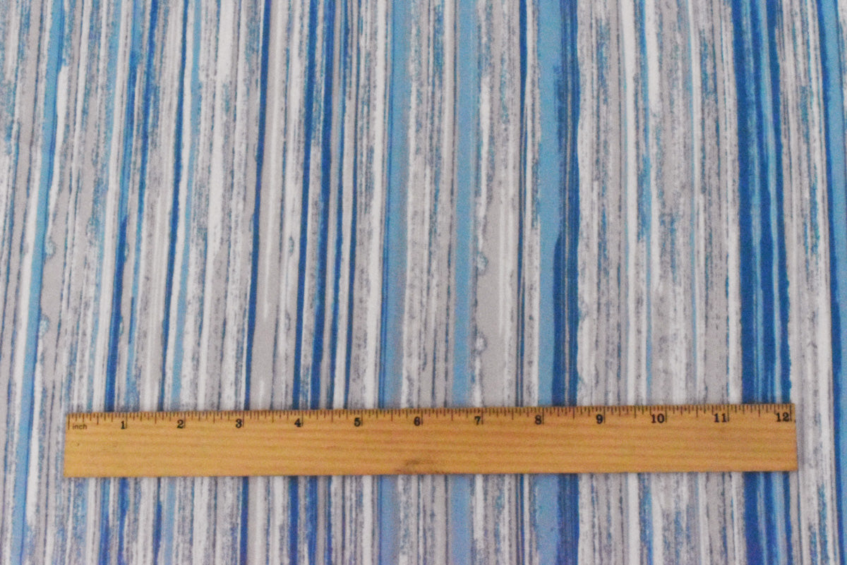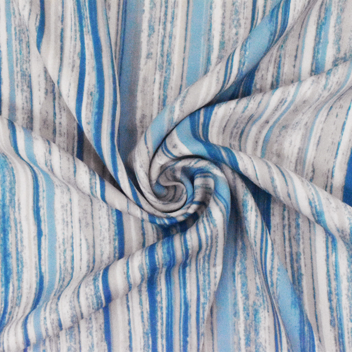 1 YD PC-Blue-White-Gray Stripe Paint Printed Poly Crepe De Chine Woven Fabric