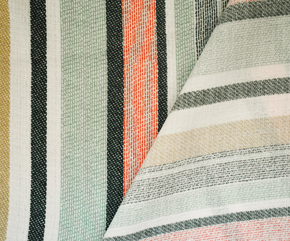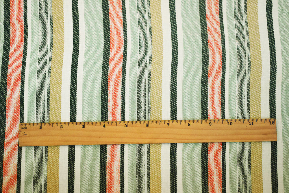 2 1/2 YD PC-Green-White-Multi Stripe Printed Poly Shirting Woven Fabric