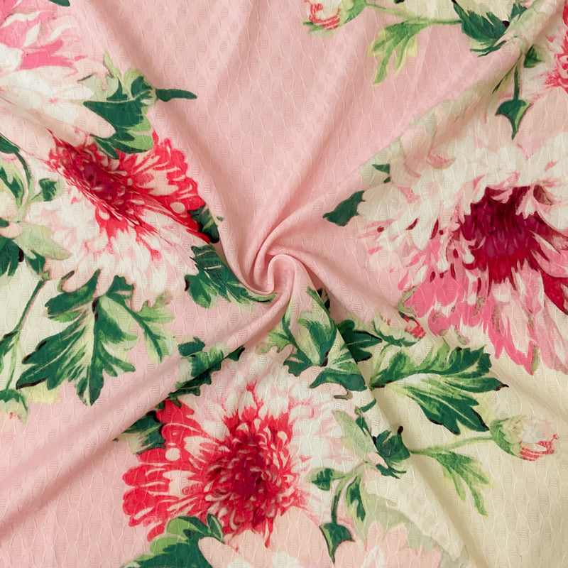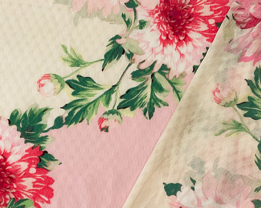 3 1/2 YD PC -Ivory-Pink-Green-Multi Poly Floral Printed Ogee Pattern Dobby Chiffon Woven Fabric