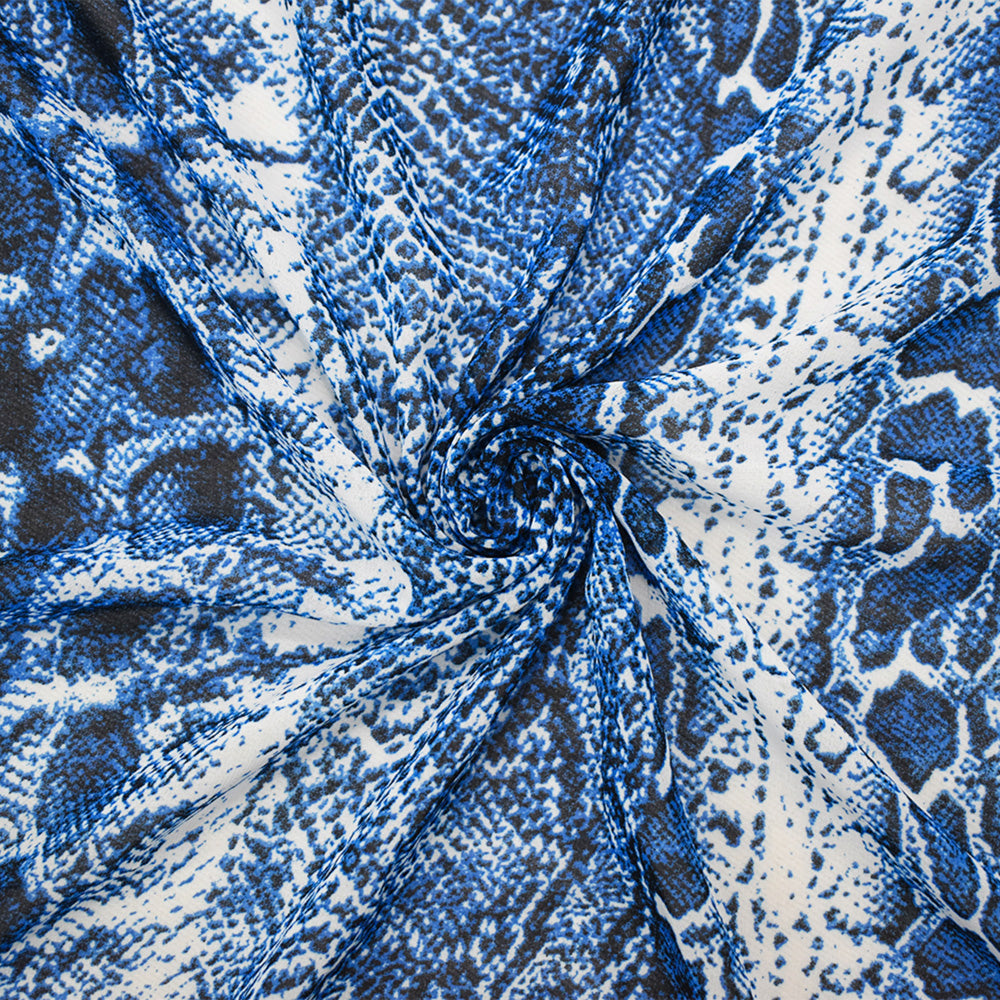 4 1/4 YD PC-Blue-Black-White Poly Reptile Printed Chiffon Woven Fabric