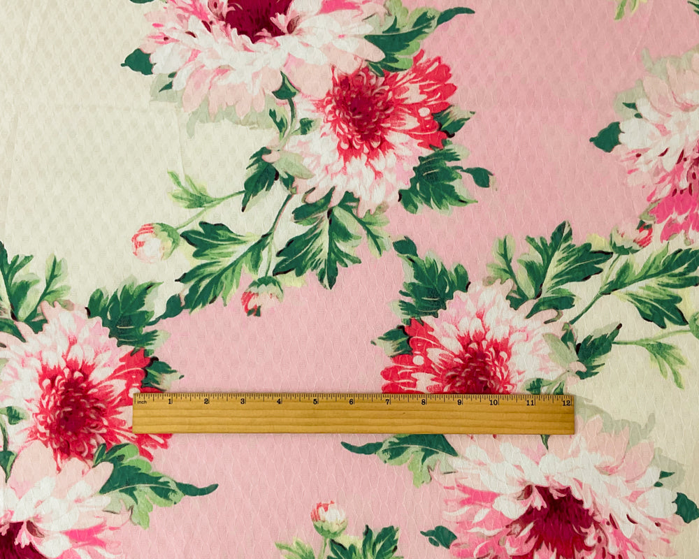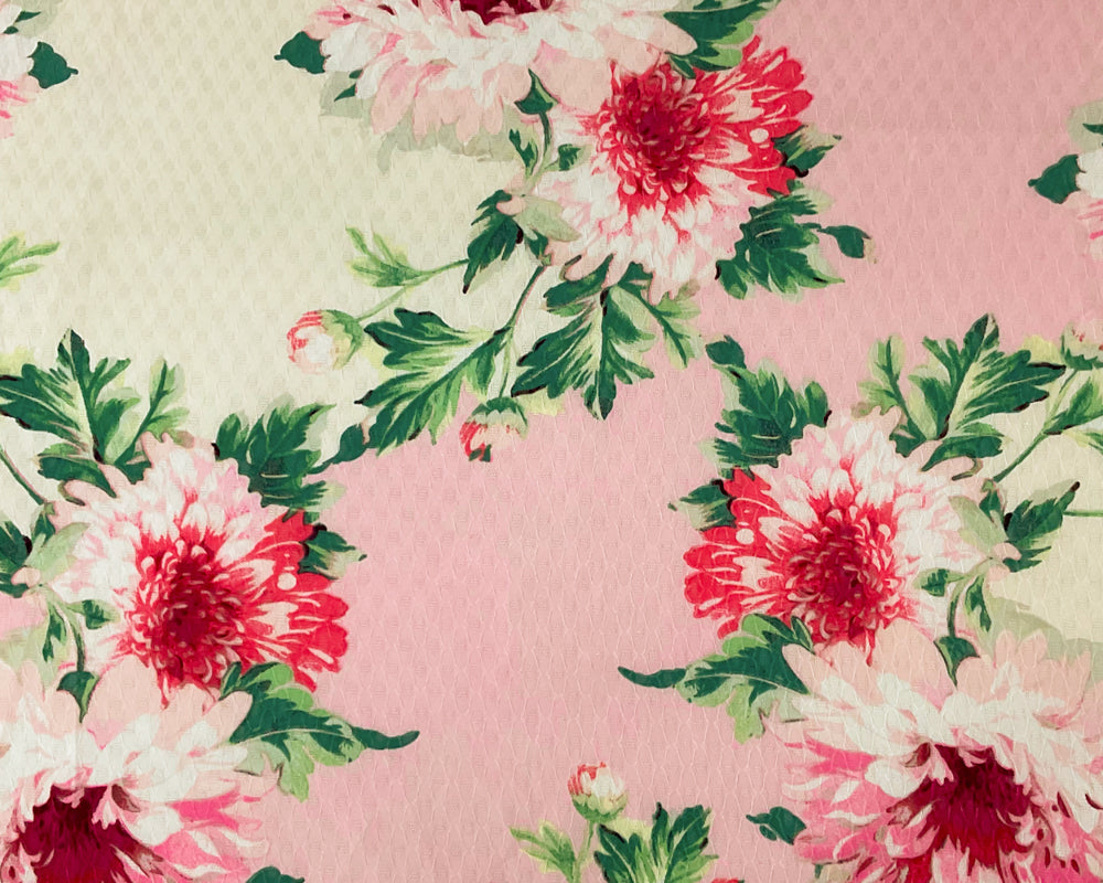 4 YD PC-Ivory-Multi Poly Floral Printed Ogee Dobby Chiffon Woven Fabric