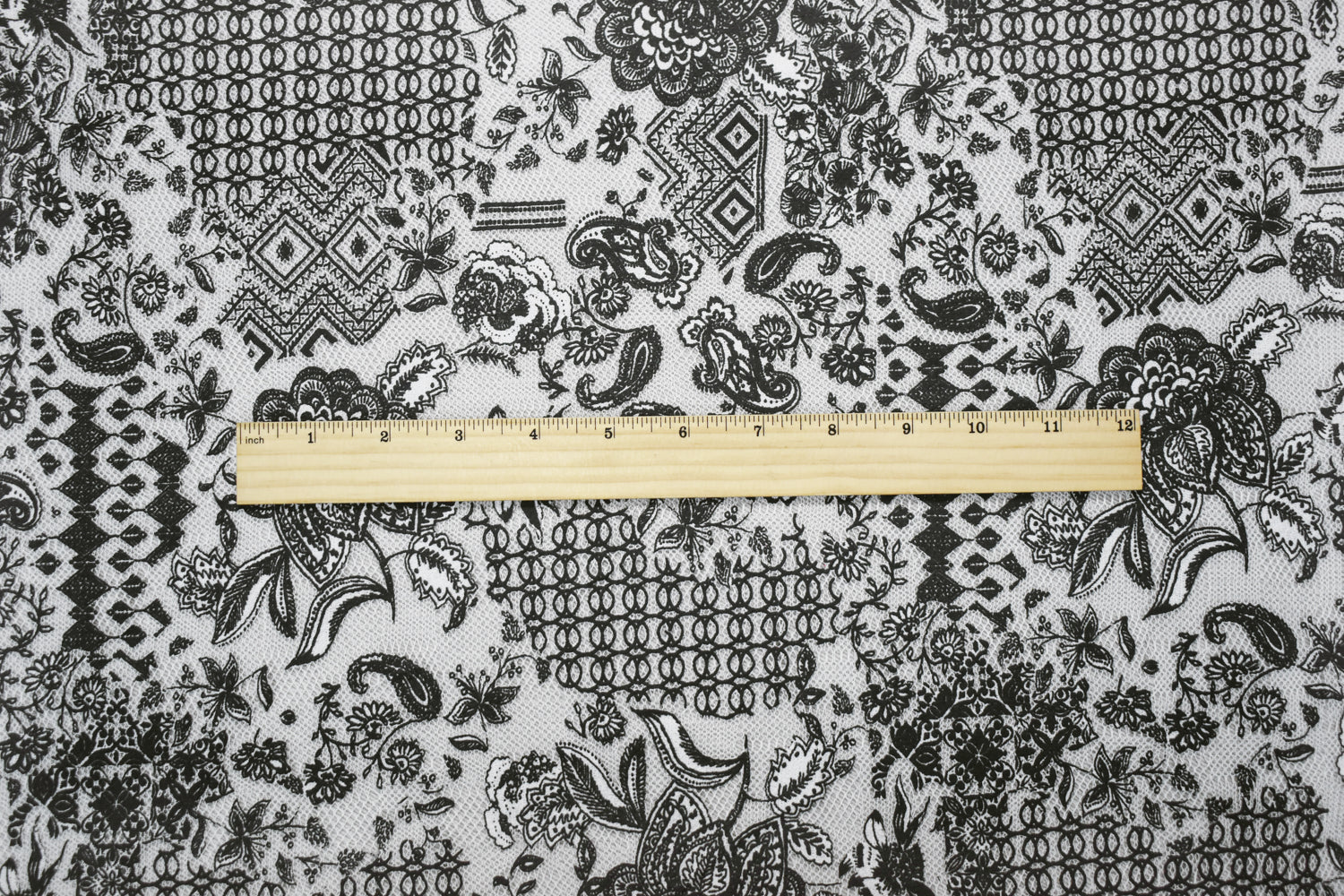 Black-White Poly Floral Patch Printed Lace Mesh Knit Fabric