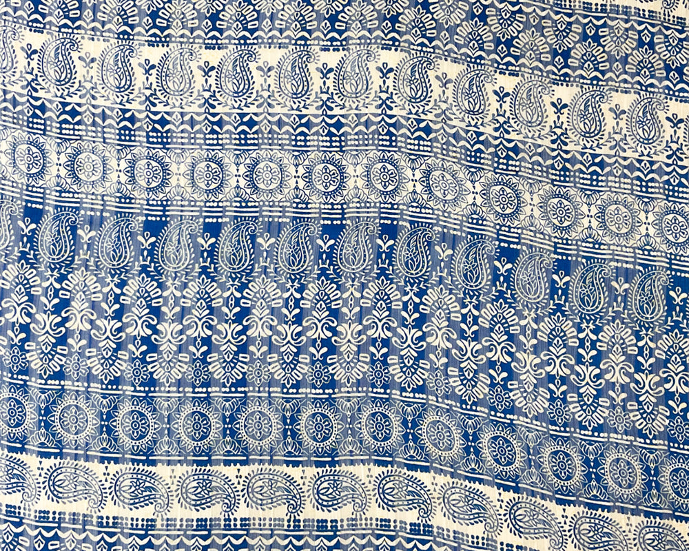 Blue-Multi Poly Paisley Print Satin Stripe Chiffon Woven Fabric