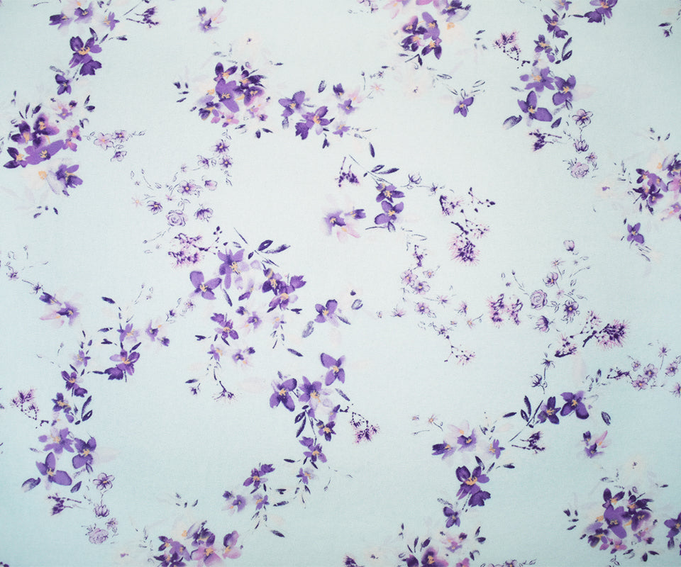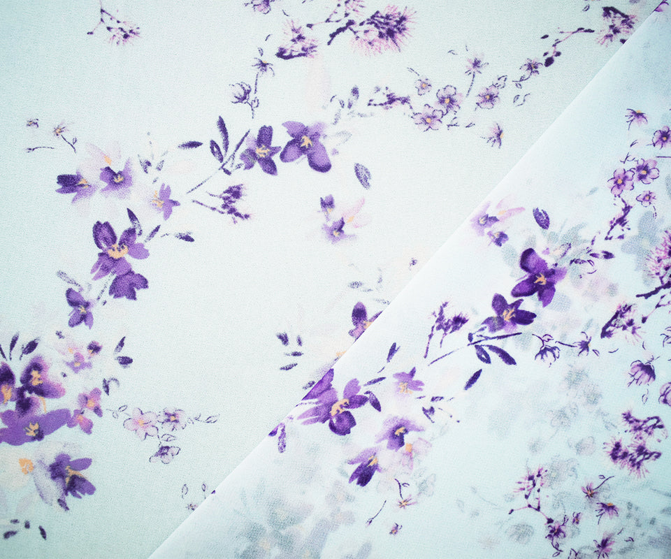 Blue-Purple-Multi Poly Floral Printed Chiffon Woven Fabric