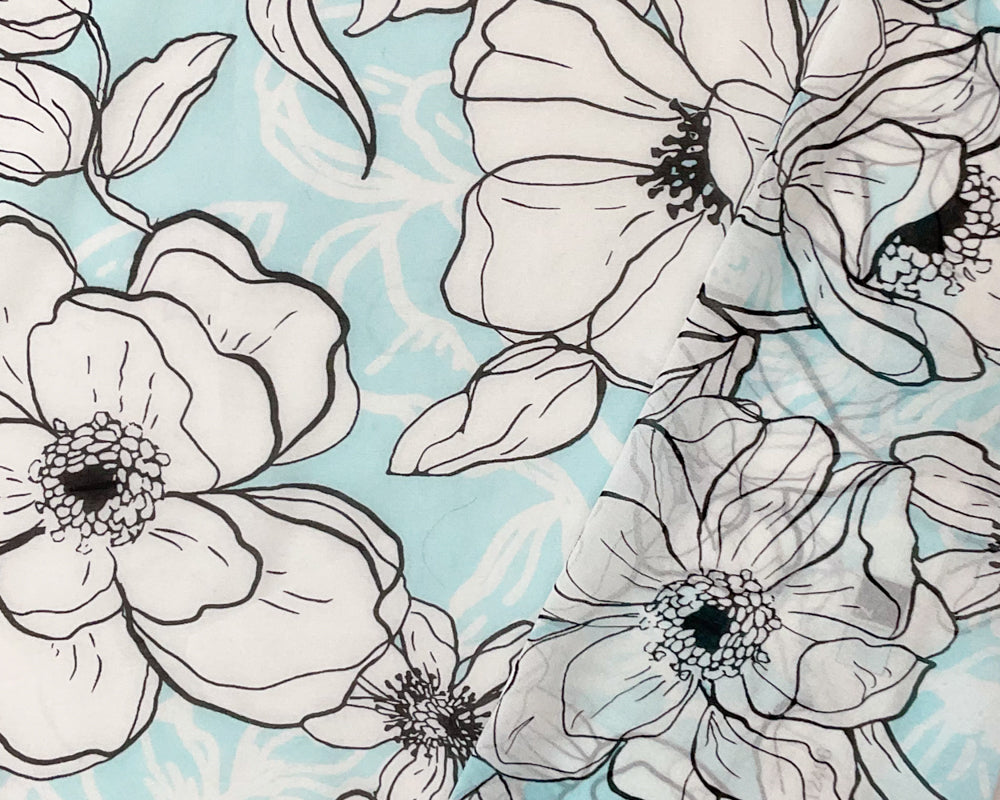 Blue-White-Black Poly Floral Printed Chiffon Woven Fabric