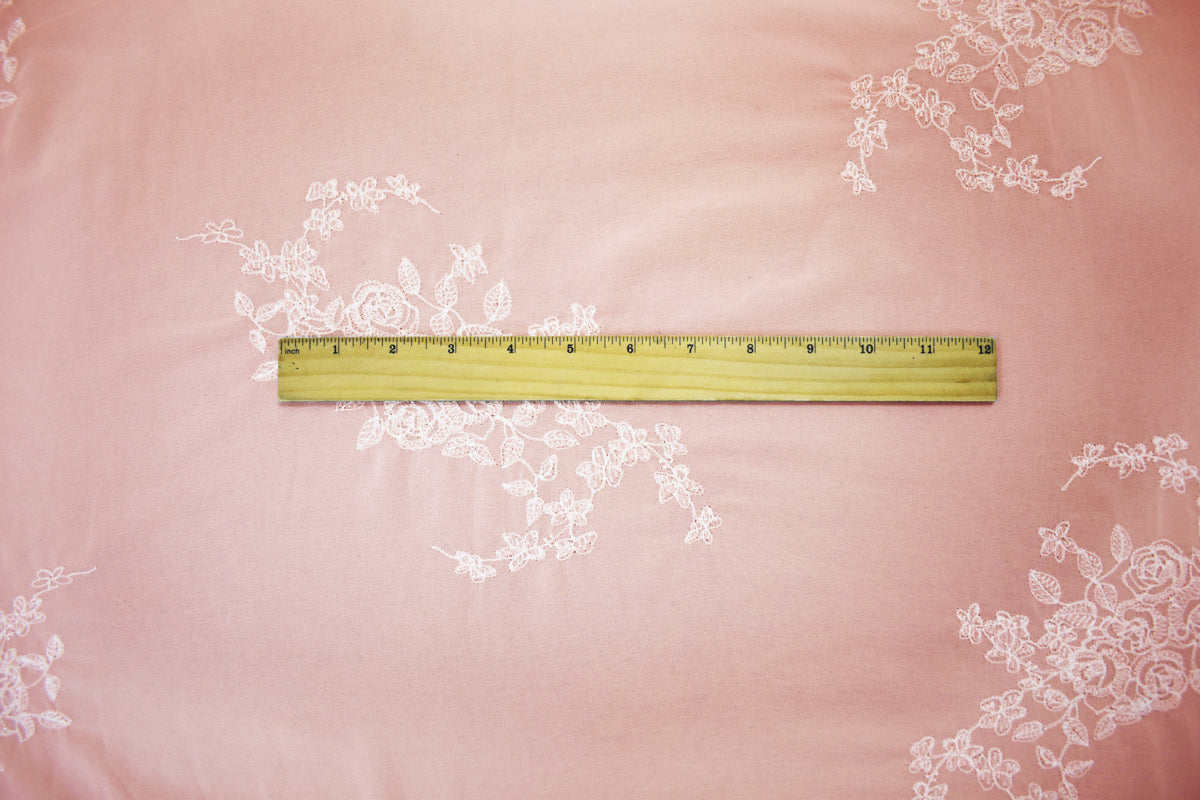 Pink-White Poly Floral Embroidered Chiffon Woven Fabric
