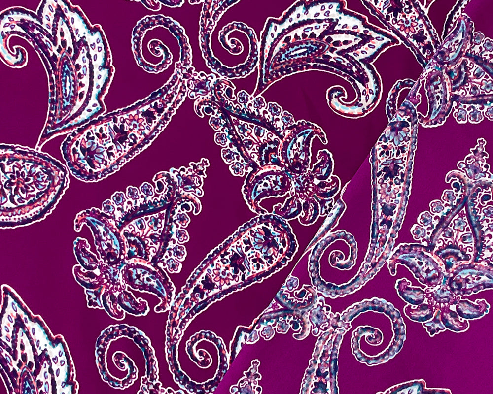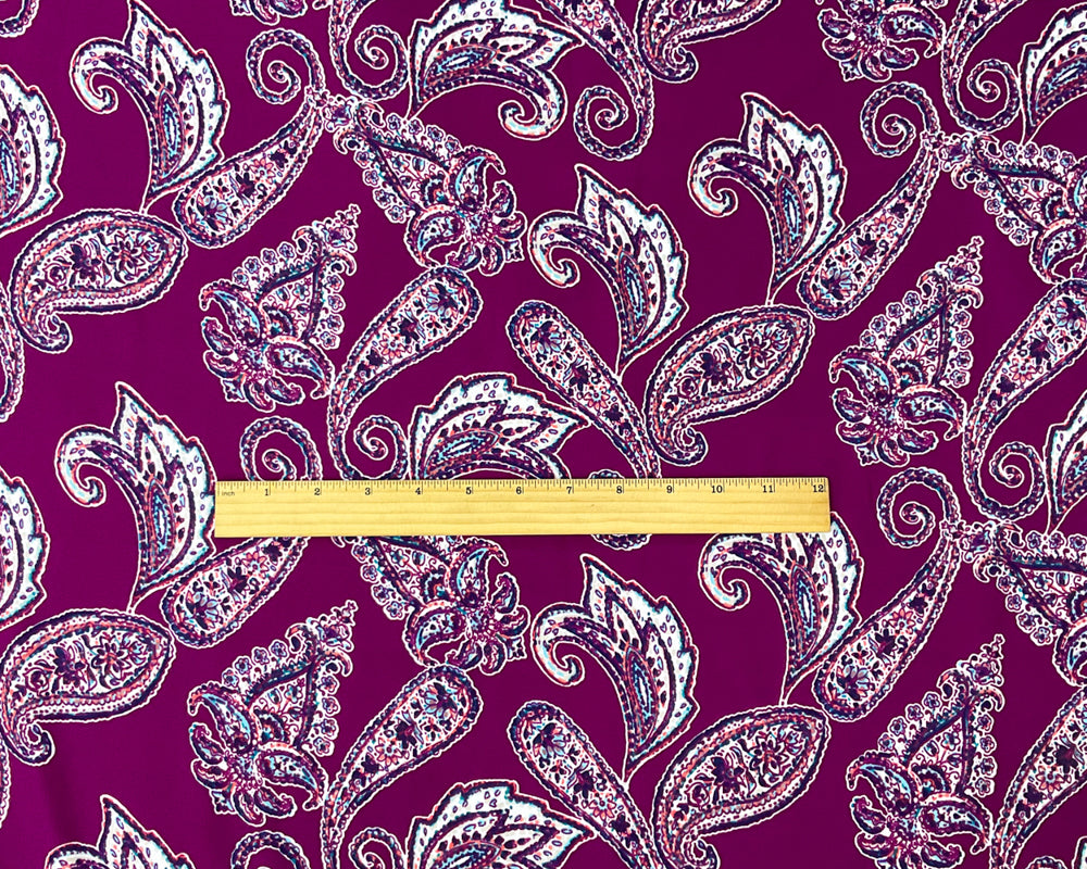 Purple-Blue-Multi Poly Paisley Printed Georgette Woven Fabric