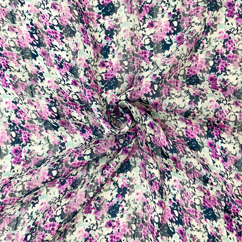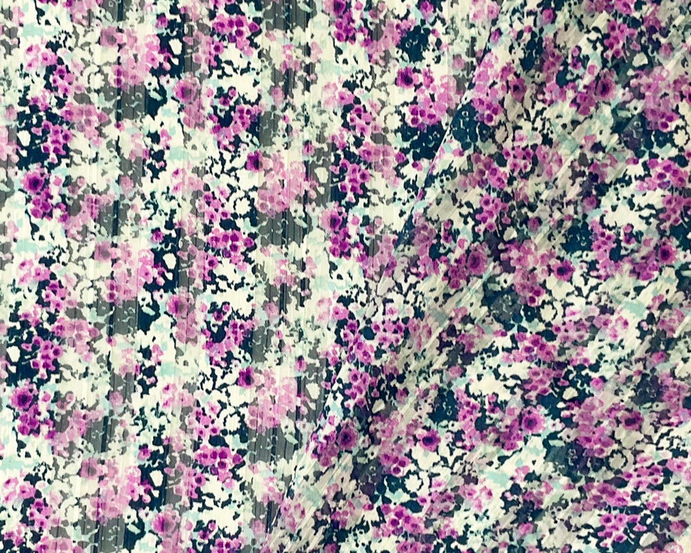 Purple-Multi Poly Floral Print Satin Stripe Chiffon Woven Fabric