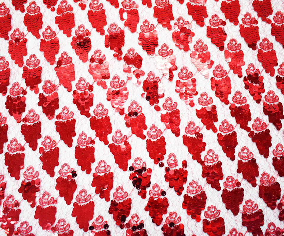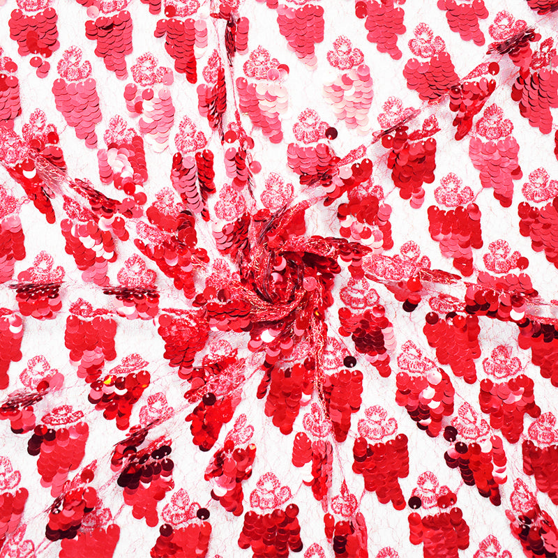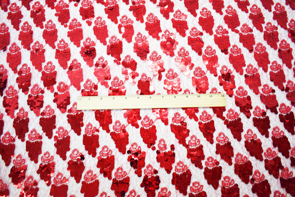 Red-Gold Metallic Poly Sequined Crochet Lace Knit Fabric