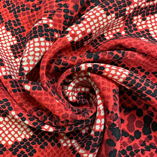 -Red, Black, & Beige Multi Snakeskin Animal Print Poly Georgette Fabric