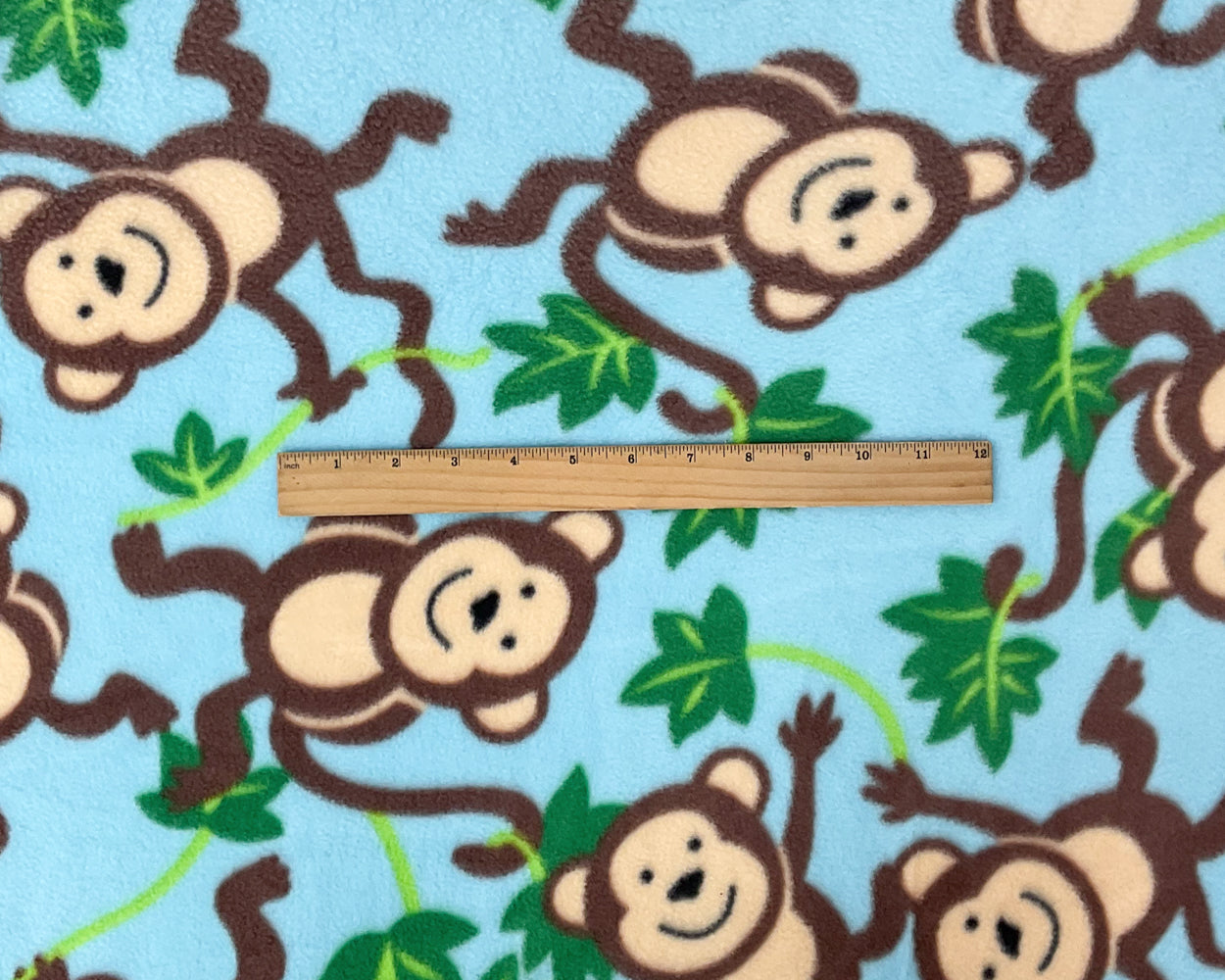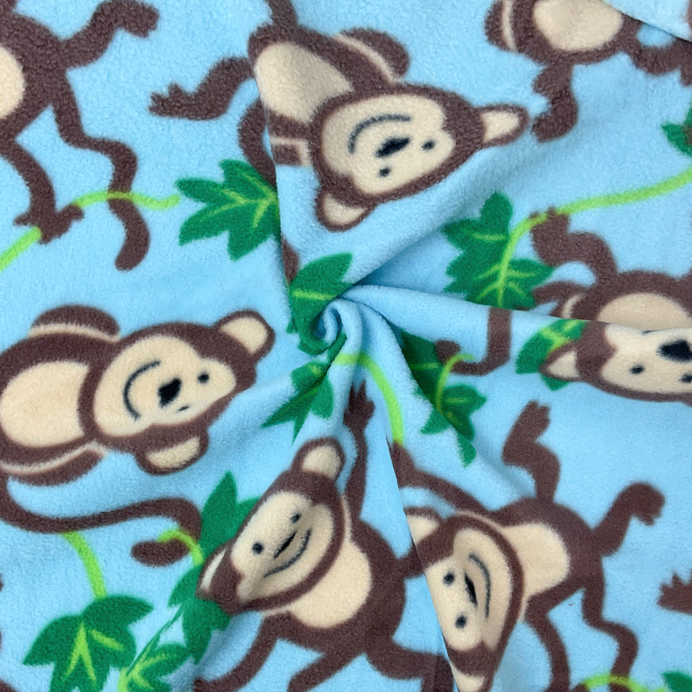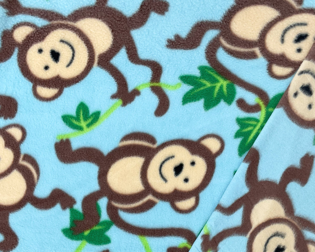 Blue-Brown-Multi Polyester Monkey Printed Polar Fleece Knit Fabric