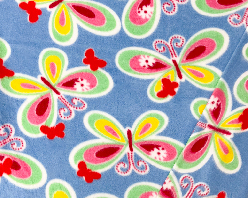 -325G/Y, Blue-Green-Multi Polyester Butterfly Printed Polar Fleece Knit Fabric