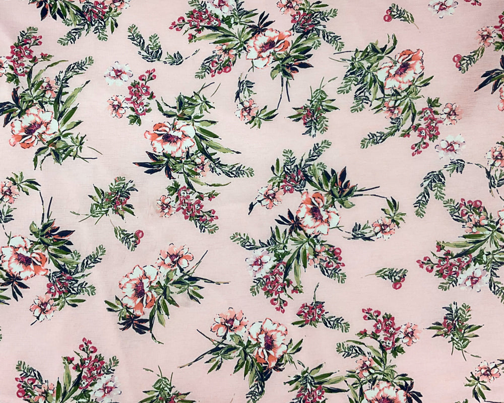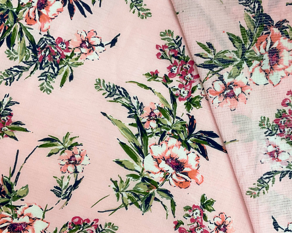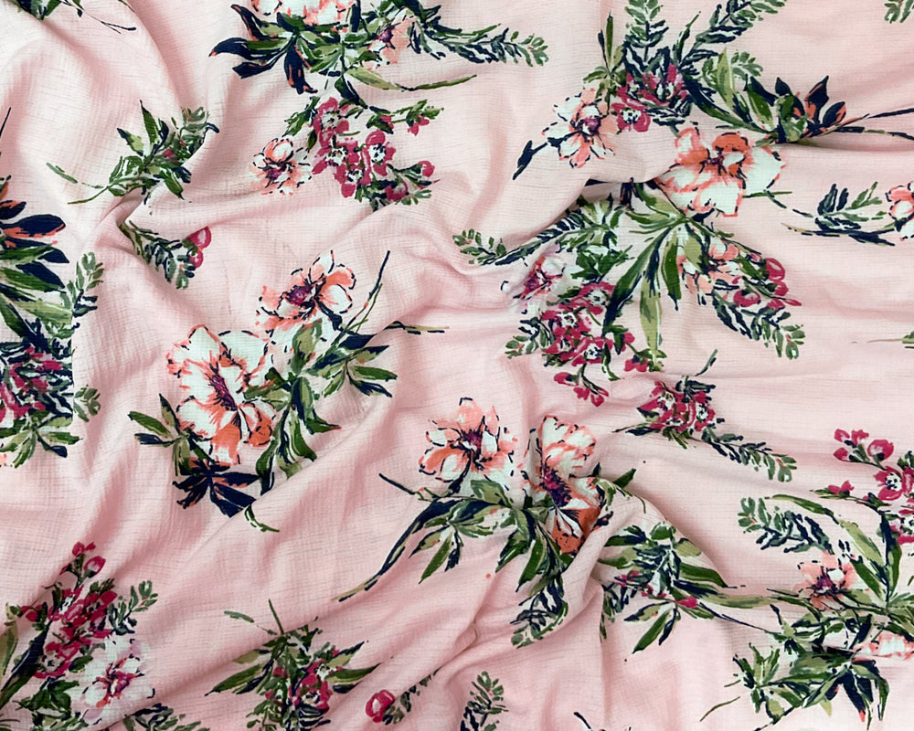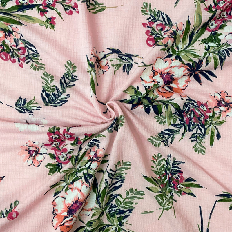 Pink-Green-Multi Poly Stretch Floral Printed Slub Knit Fabric