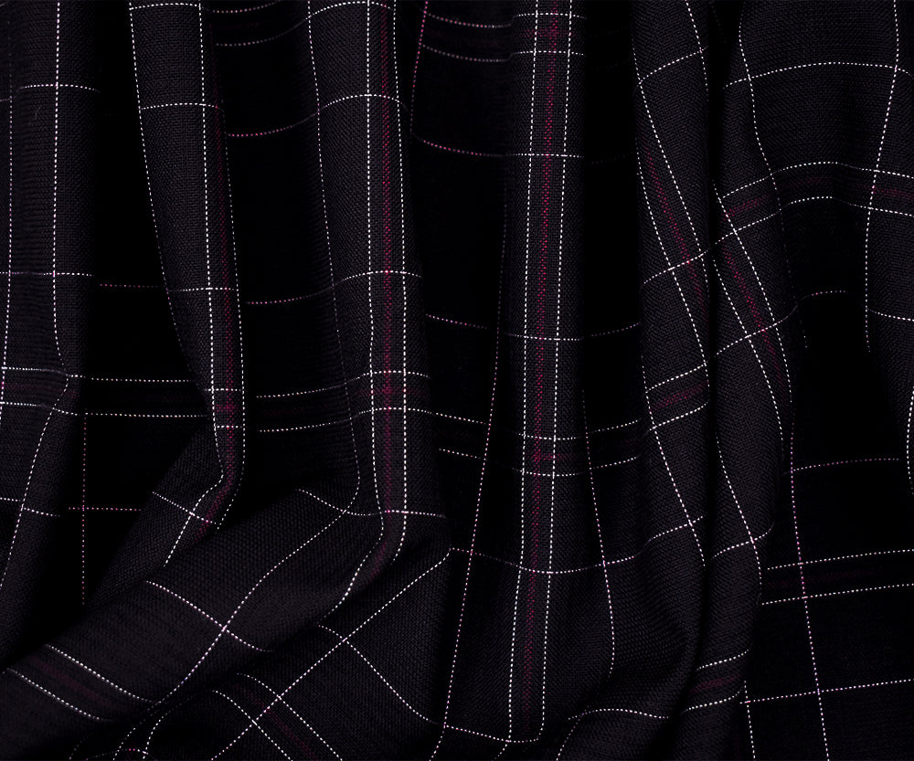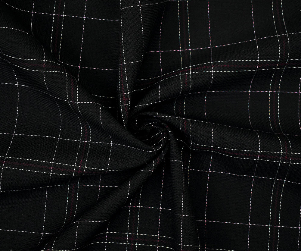 Black-Burgundy-Multi Polyester Wool Blend Plaid Shirting Woven Fabric