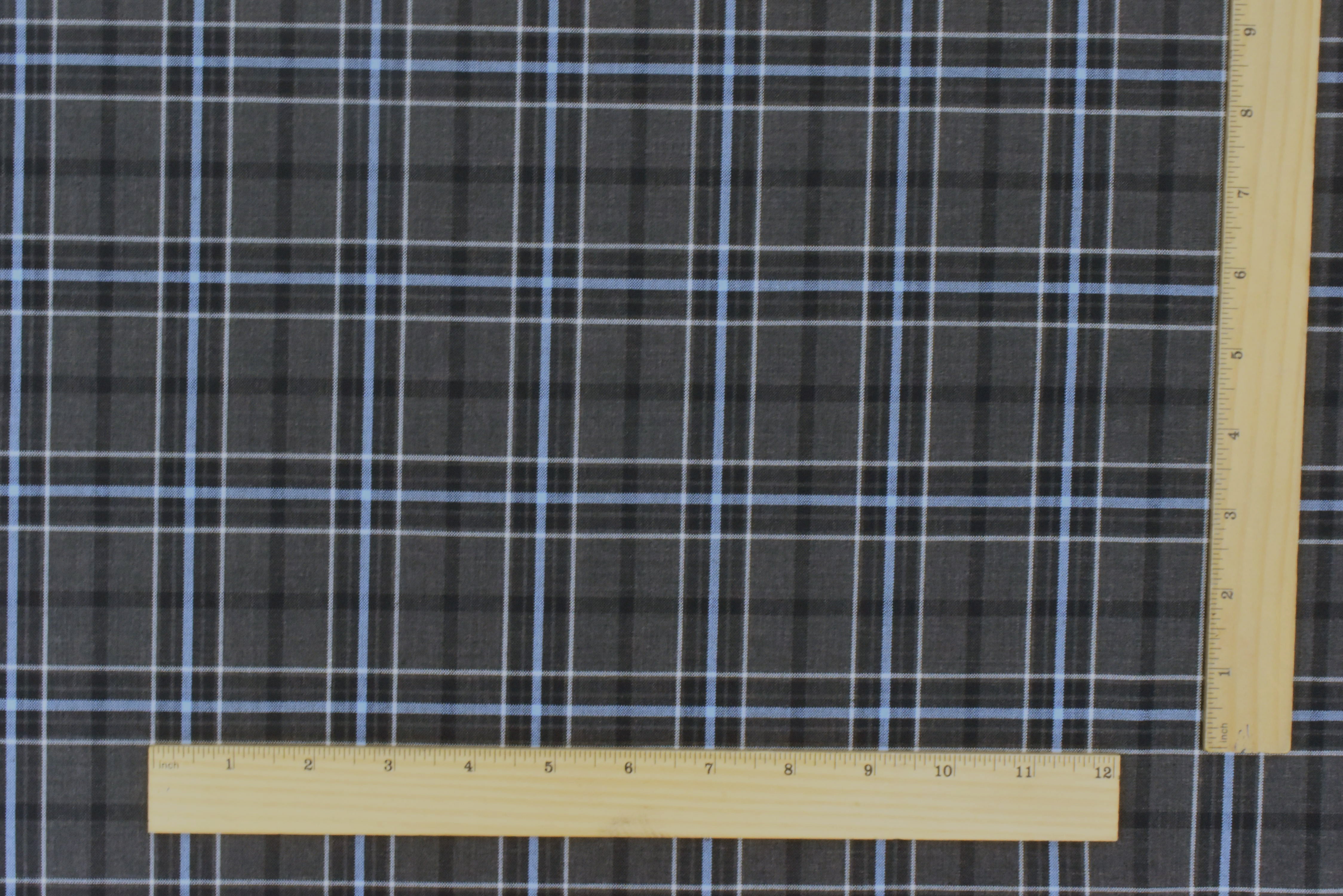 Slate Gray-Blue-Multi Plaid Poly-Wool Woven Suiting Fabric