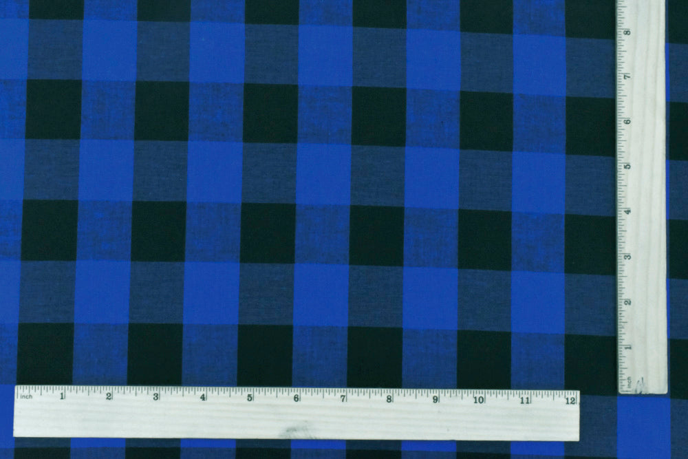 Cobalt Blue-Black Gingham Poplin Shirting Woven Fabric