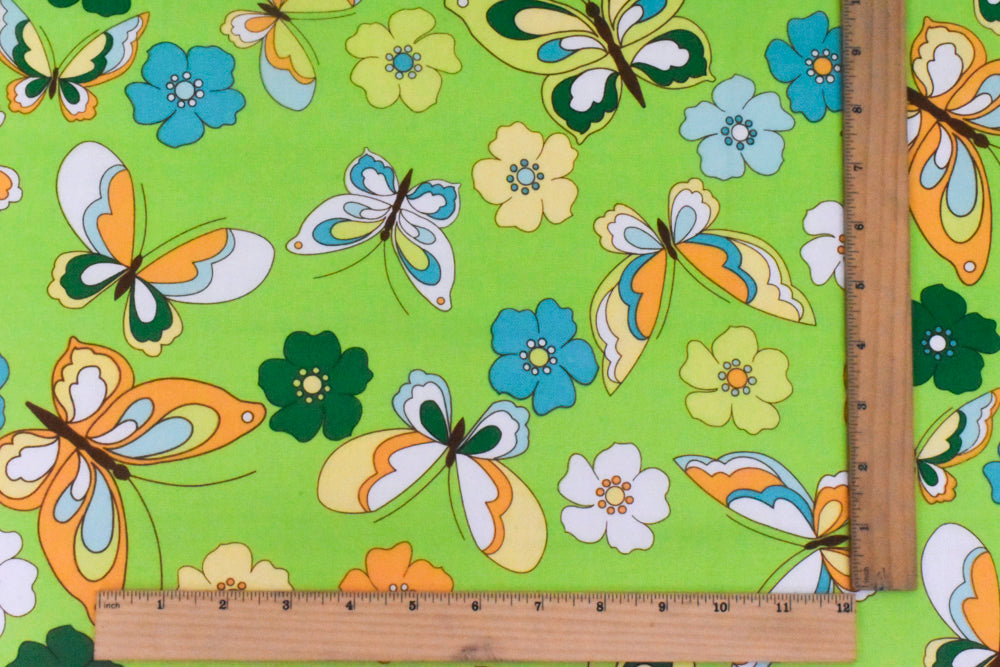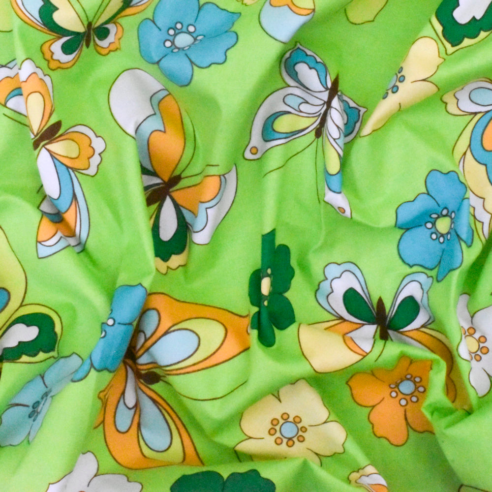 Green-Multi Floral Butterfly Print Stretch Cotton Poplin Fabric