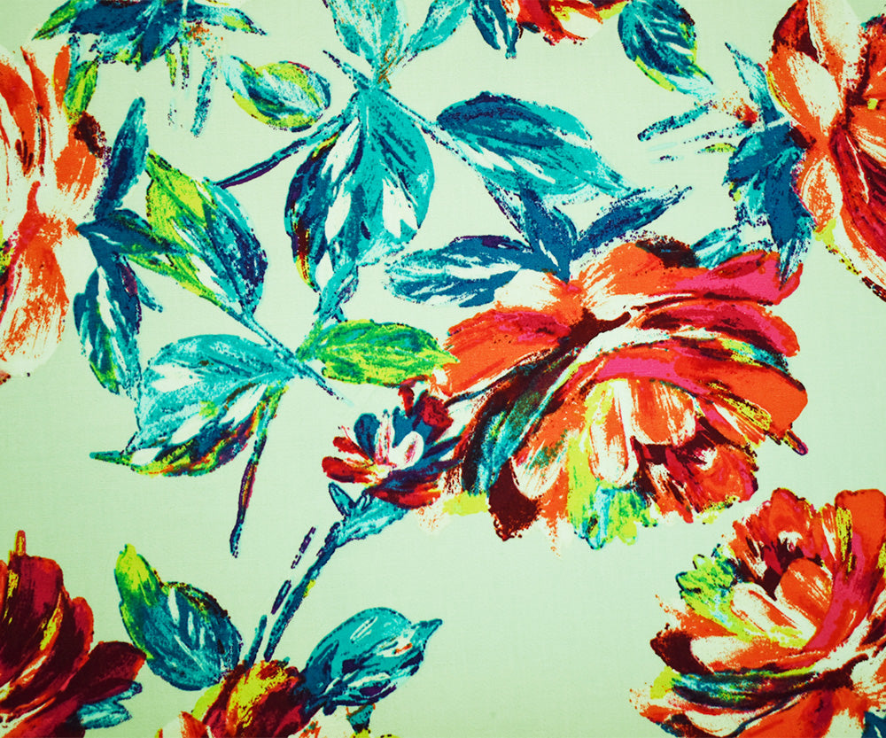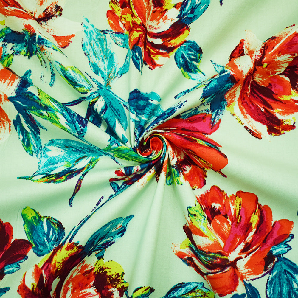 Mint Green-Multi Cotton Floral Print Stretch Spandex Poplin Woven Fabric