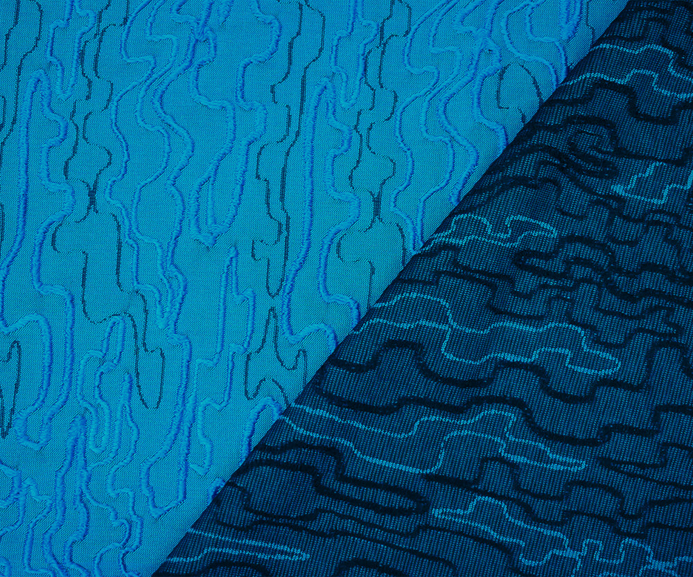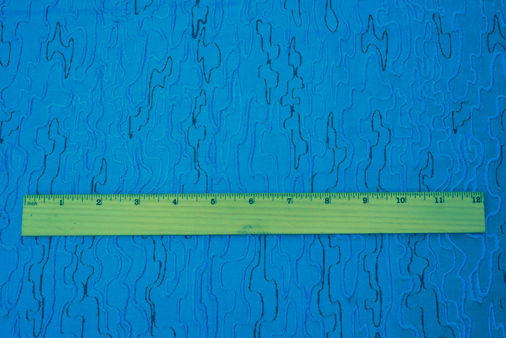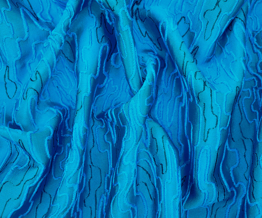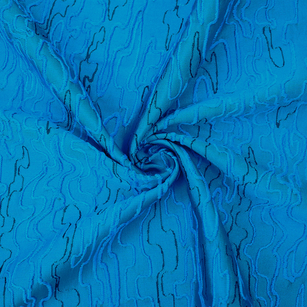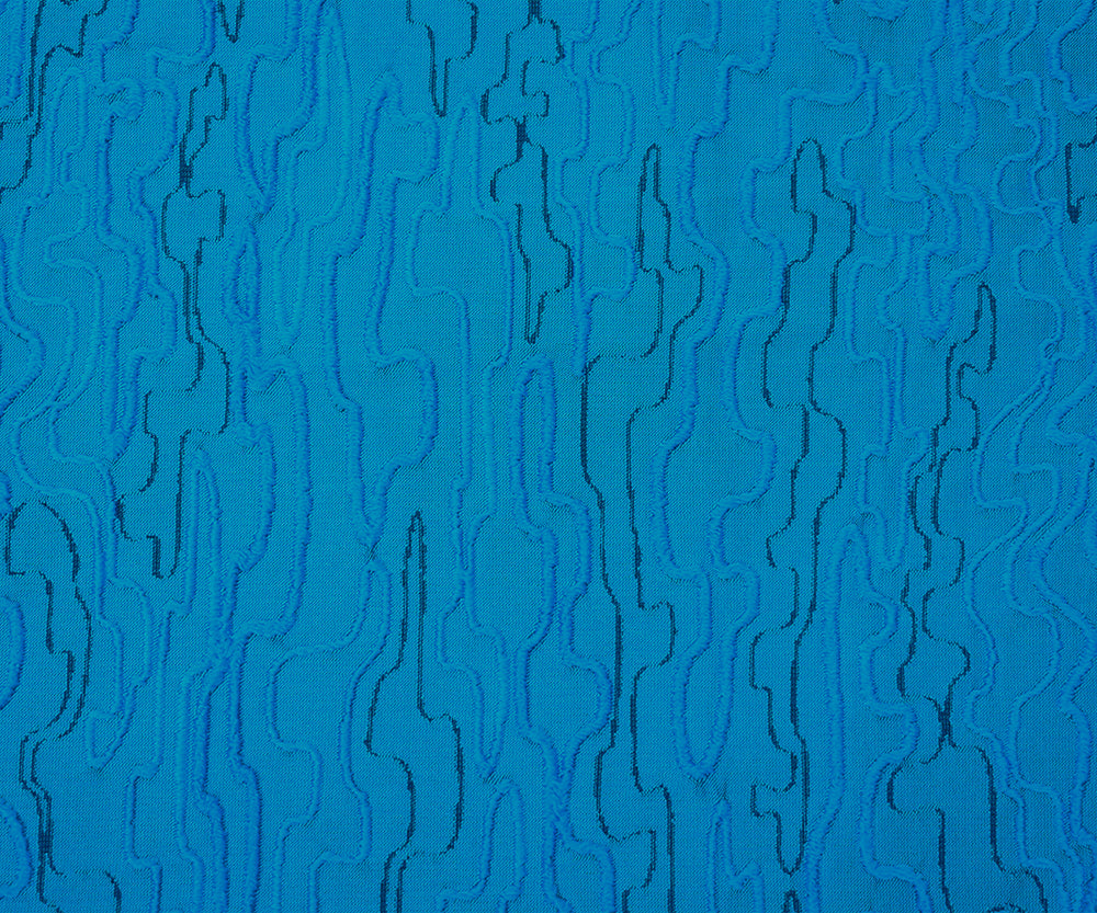 Blue-Black Polyester Abstract Embroidered Jacquard Woven Fabric