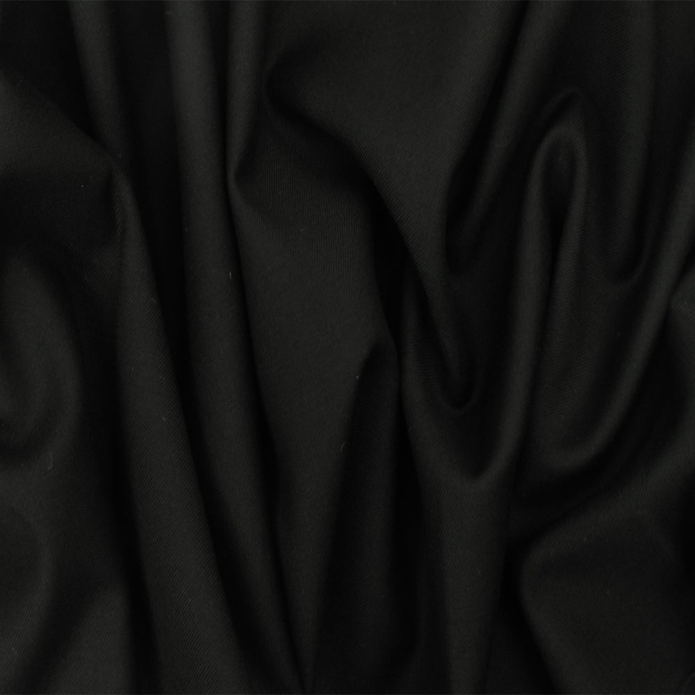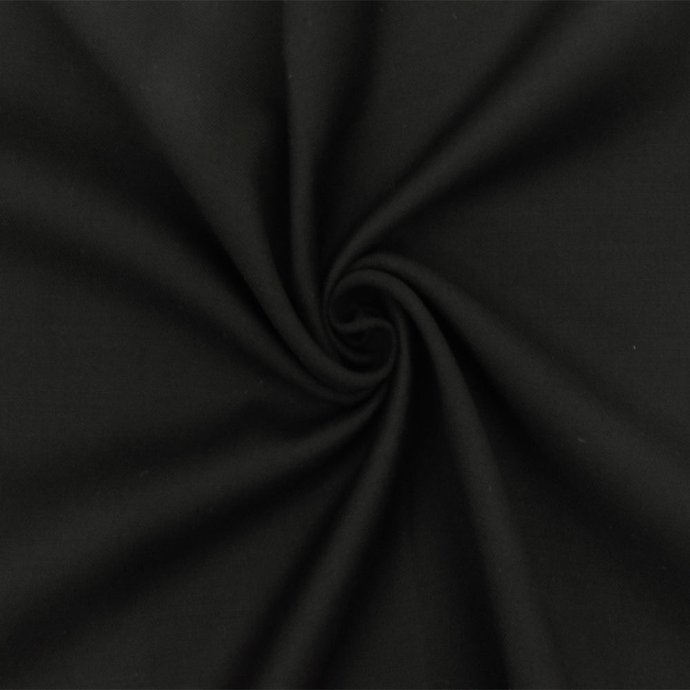 Midnight Black Solid Wool-Cotton Woven Suiting Fabric