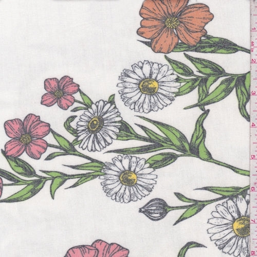 1 1/2 YD PC-Ivory Multi Floral Stem Brushed French Terry Knit Fabric