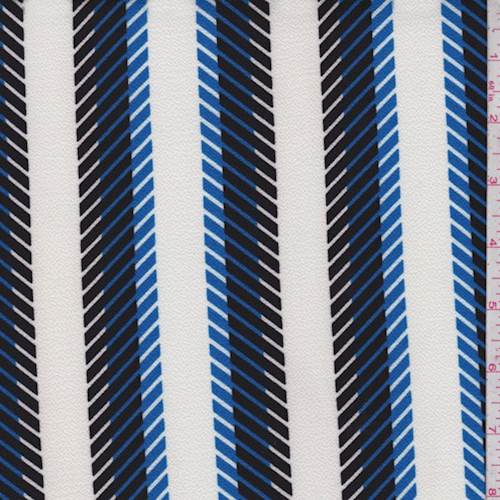 2 YD PC-White/Royal/Black Deco Stripe Crepe Fabric