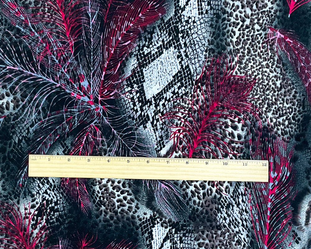 Black-Red-Multi Rayon Animal Printed Challis Woven Fabric