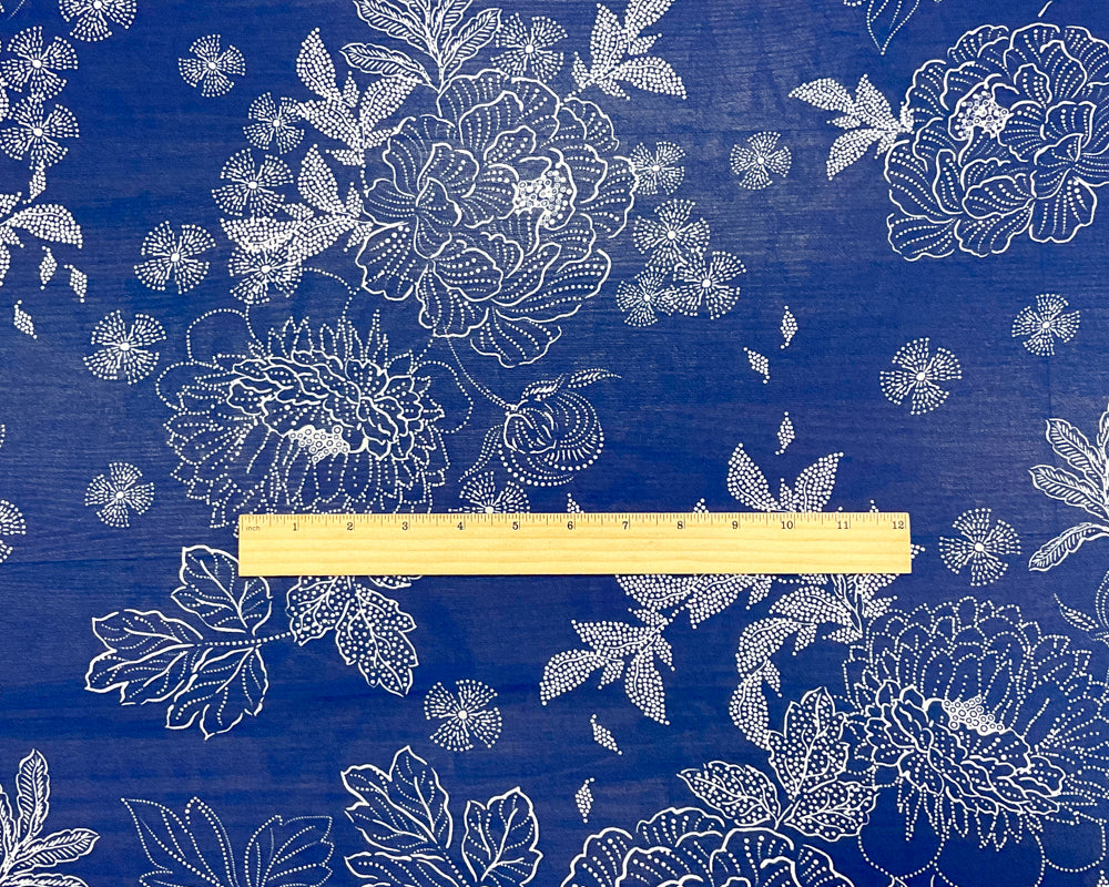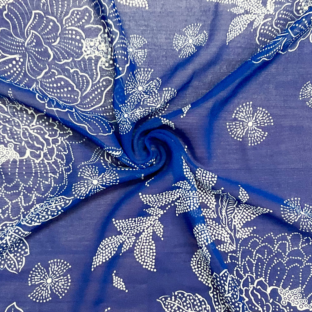 -Blue-White Poly Floral Printed Chiffon Woven Fabric