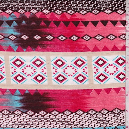 Coral/Maroon Southwest Stripe Rayon Crinkle Fabric