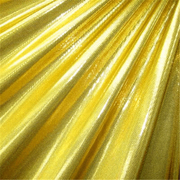 Metallic Gold Laser Foil Dot Print on Gold Spandex Fabric 4 Way Stretch Suitable for Dancewear, Apparel, & Costumes 80% Nylon 20% Spandex 58" Wide