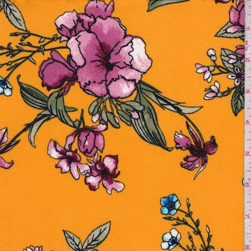 Goldenrod/Mauve Floral Double Brushed Jersey Knit Fabric