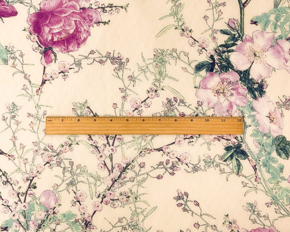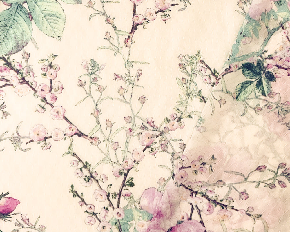 -Purple-Ivory-Multi Poly Floral Printed Ogee Pattern Dobby Chiffon Woven Fabric