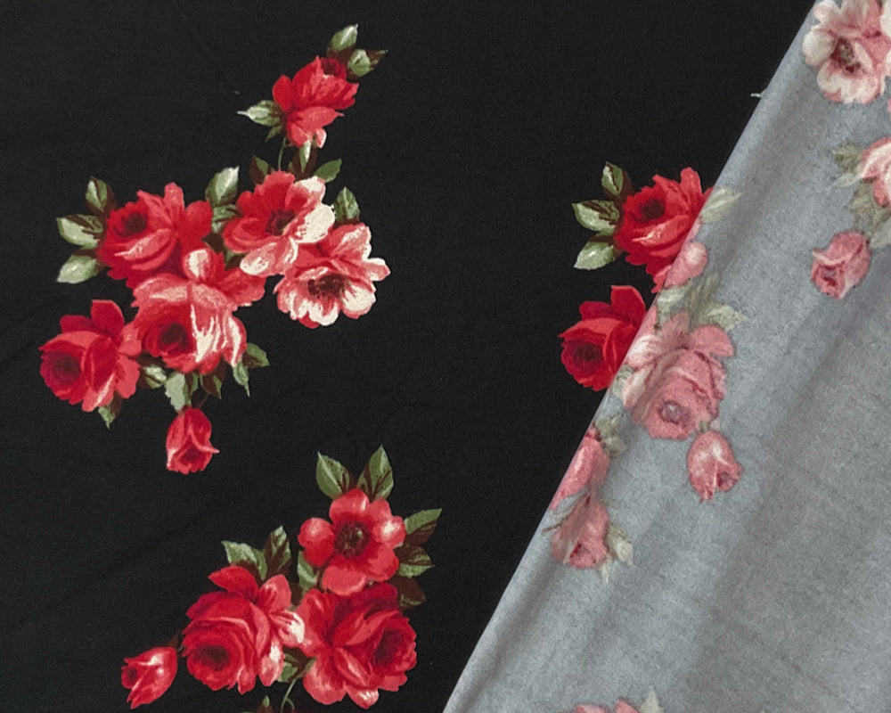 Black-Red Poly Stretch Floral Print DB Jersey Knit Fabric