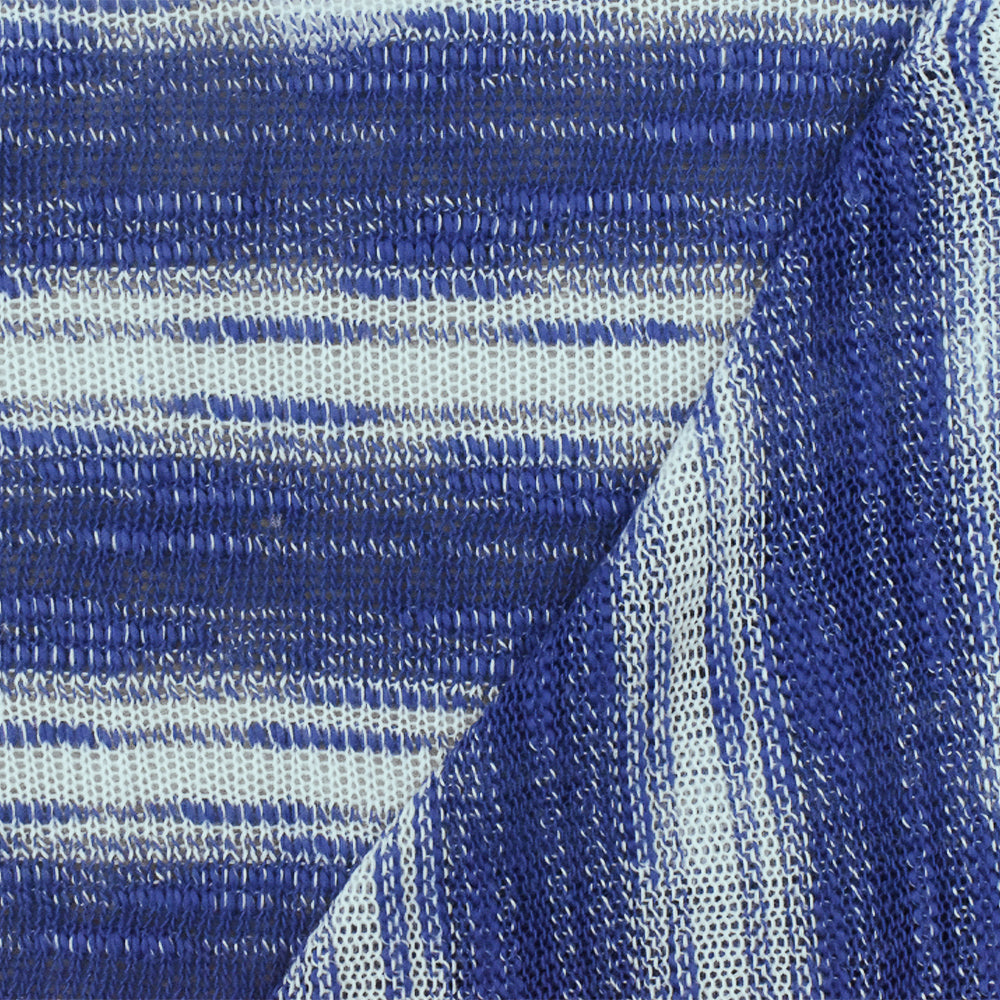 Cartoon Blue-White Slub Stripe Poly Rayon Jersey Knit Fabric