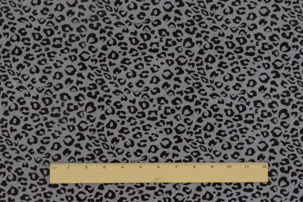 Gray-Black Leopard Velvet Flocked Stretch Jersey Knit Fabric