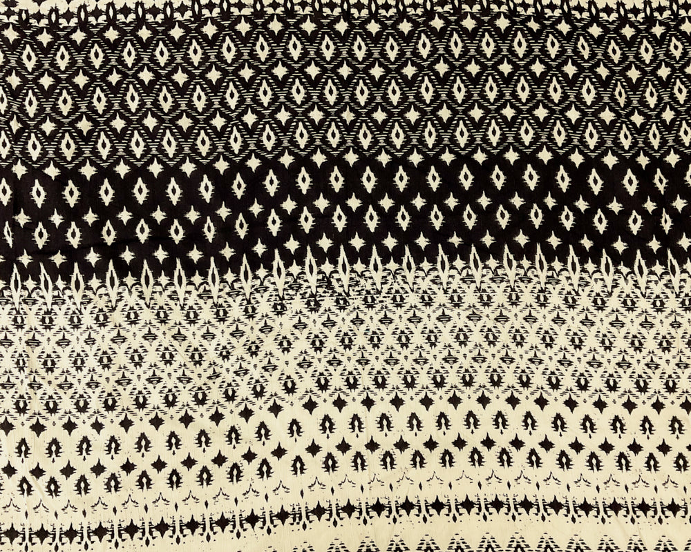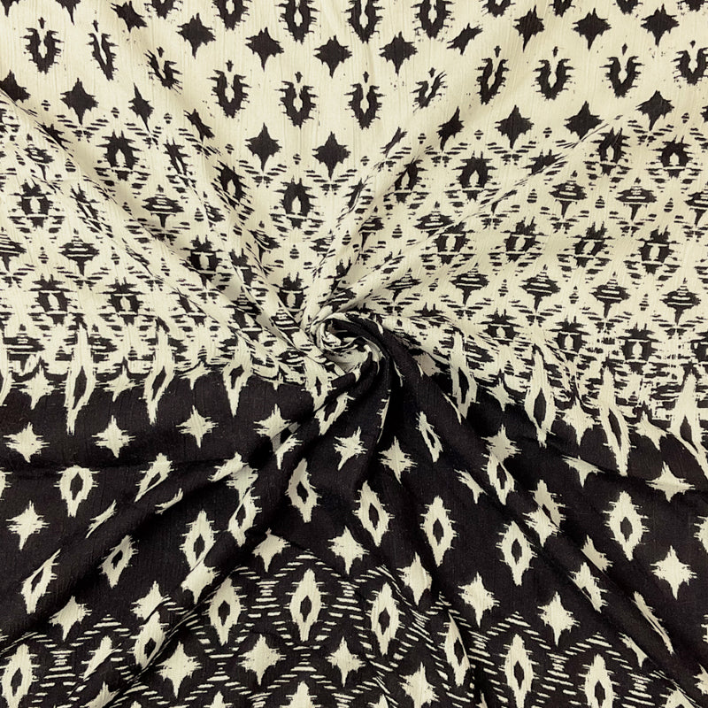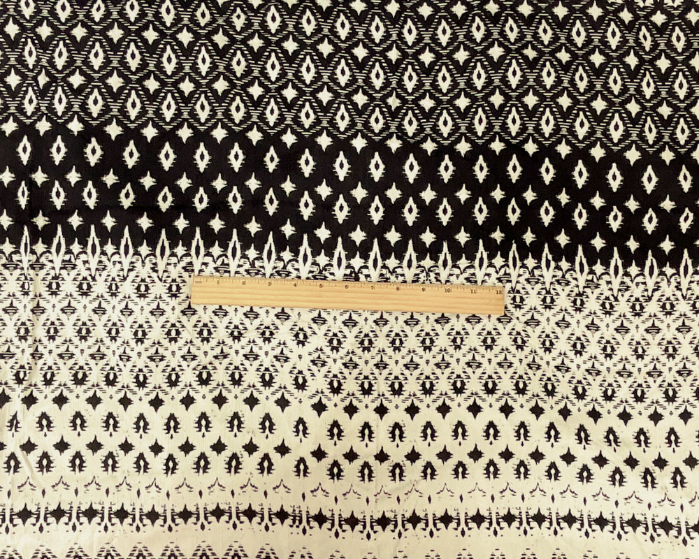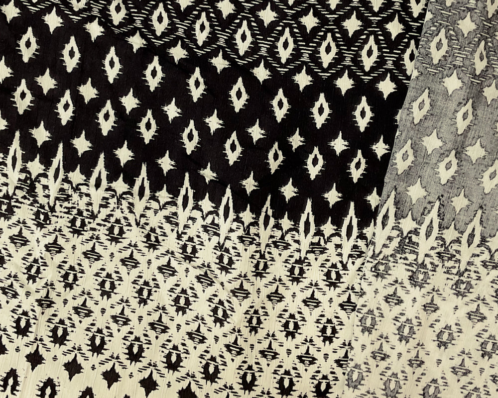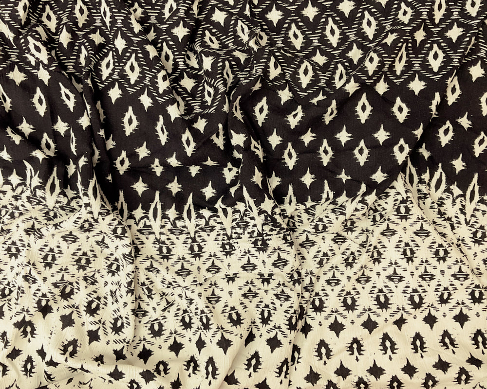 Ivory-Black Cotton Abstract Border Printed Gauze Woven Fabric