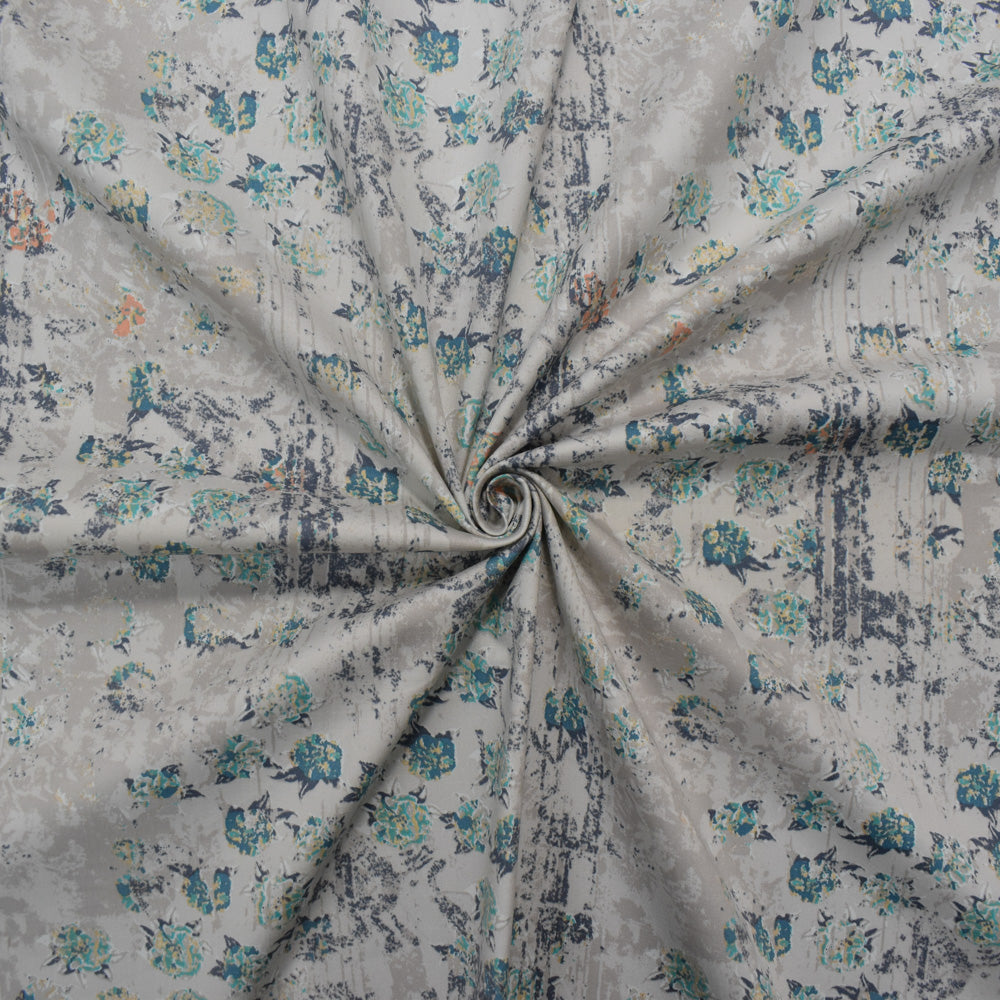 Teal-Multi Cotton Floral Texture Printed Stretch Twill Sateen Woven Fabric