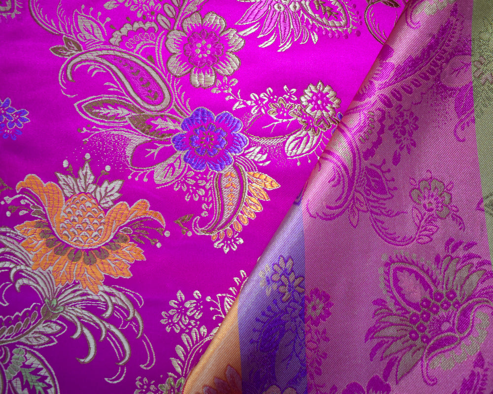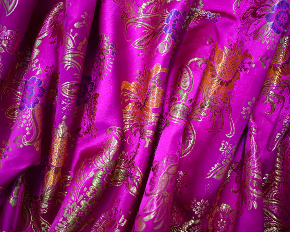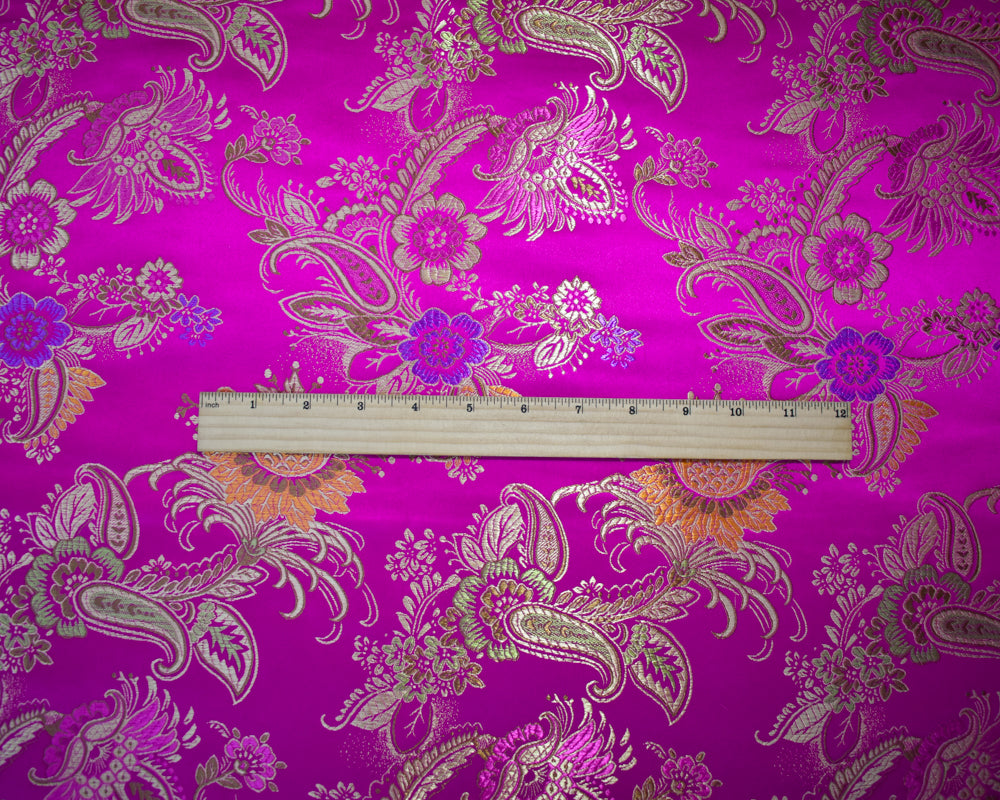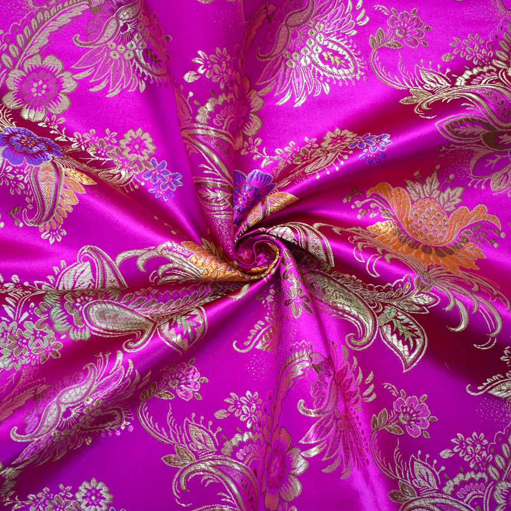 Fuchsia Pink-Multi Polyester Floral Paisley Chinese Brocade Woven Fabric
