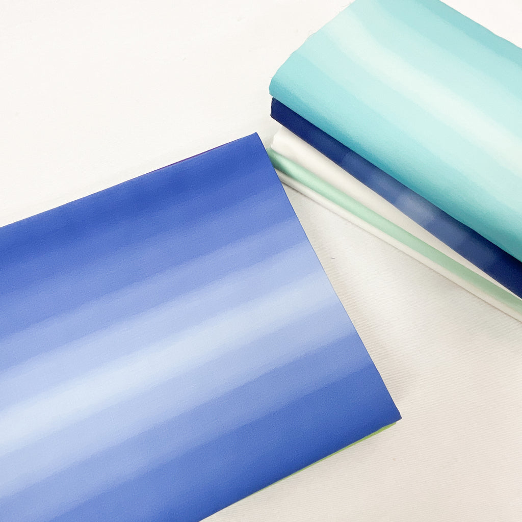 - Bundle fabrics include: 1 3/8 mint green ombre, 5 yards off white solid, 1/2 yd same off white solid, 1 yd water blue ombre, 3/4 yd pear green ombre, 3/4 yd teal ombre, 1 yd purple ombre, 1 yd blue ombre, 2 1/8 yd teal ombre, 2 yds deep blue ombre, 1 3/8 yd same deep blue ombre. Pattern is not included