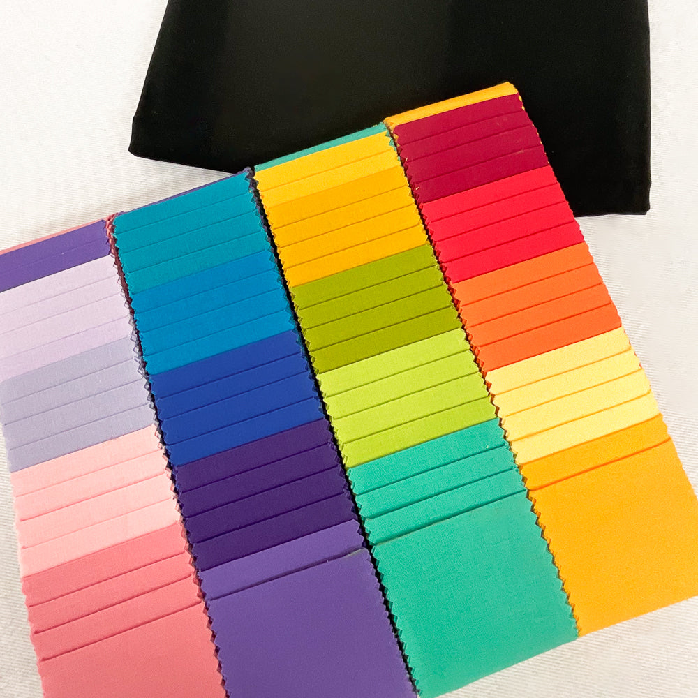 - Bundle fabrics include: 2/3 yard solid black, 2 1/2" strips of various colors as pictured. Pattern is not included.