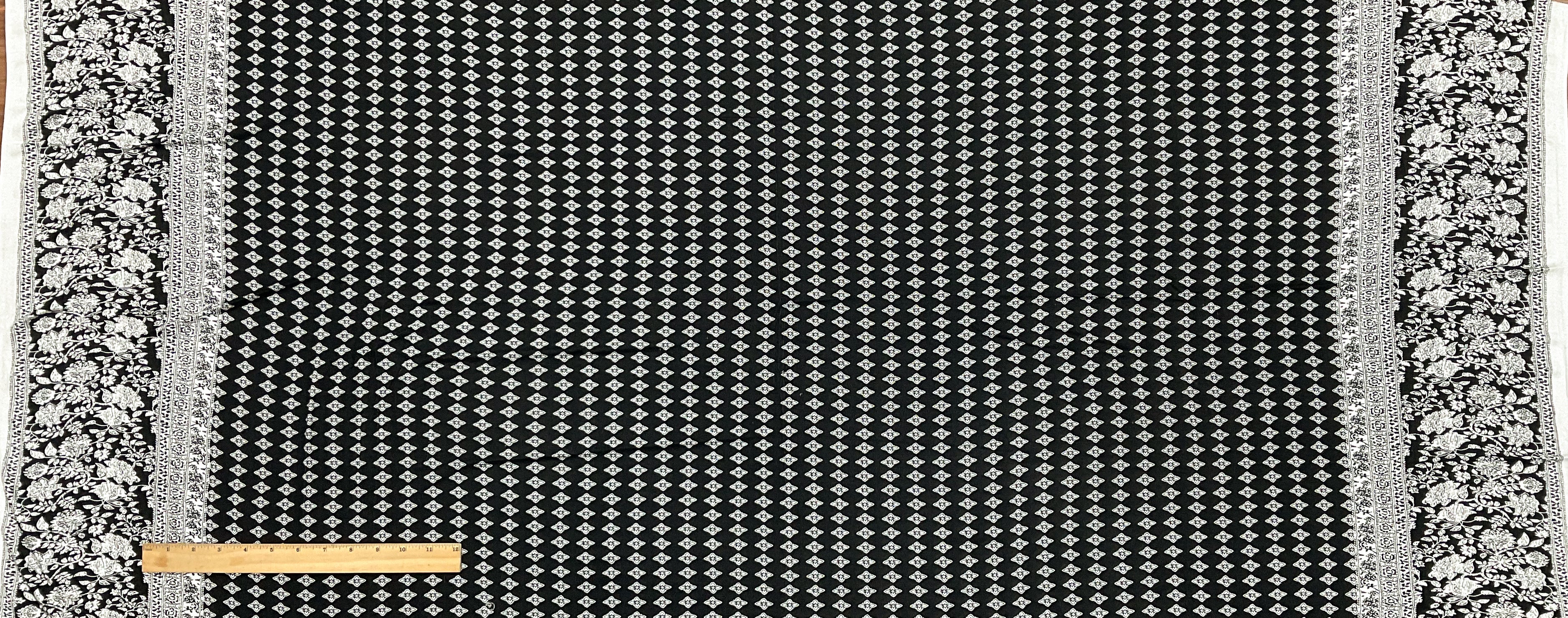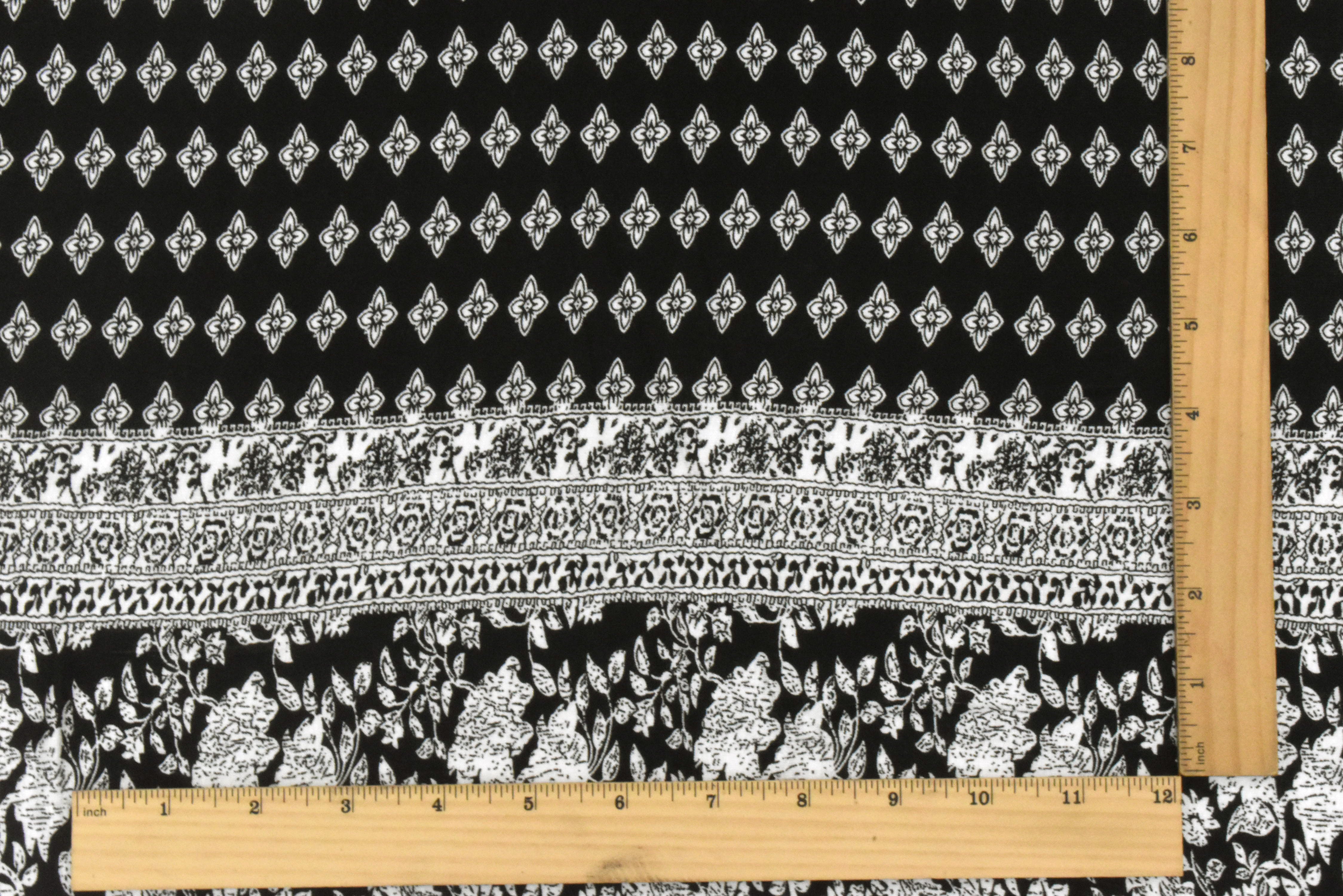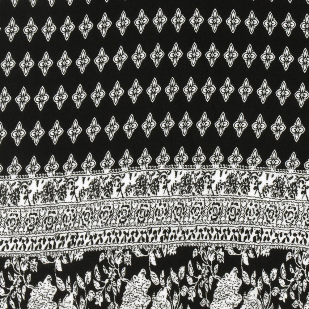 Black-White Floral Border Printed Rayon Stretch Jersey Knit Fabric