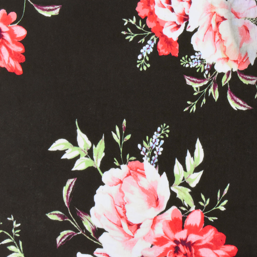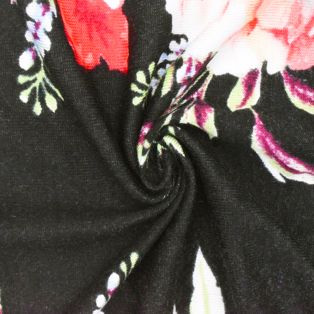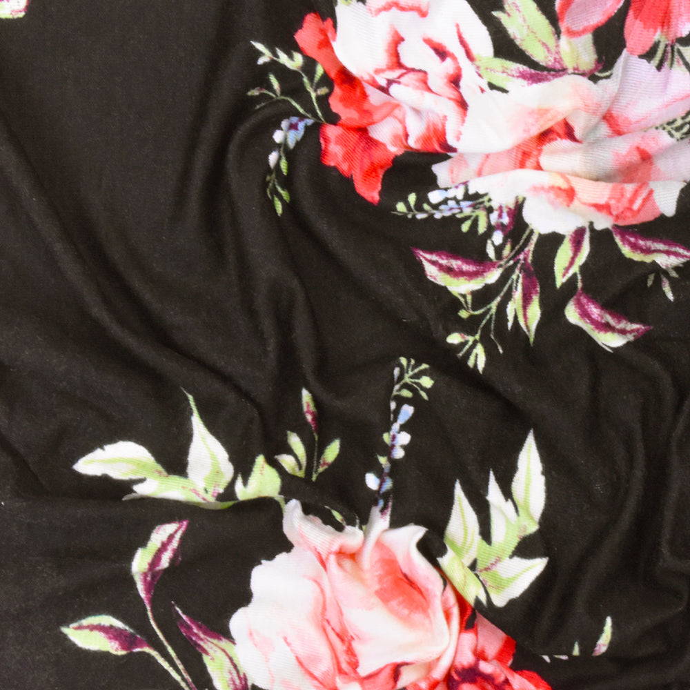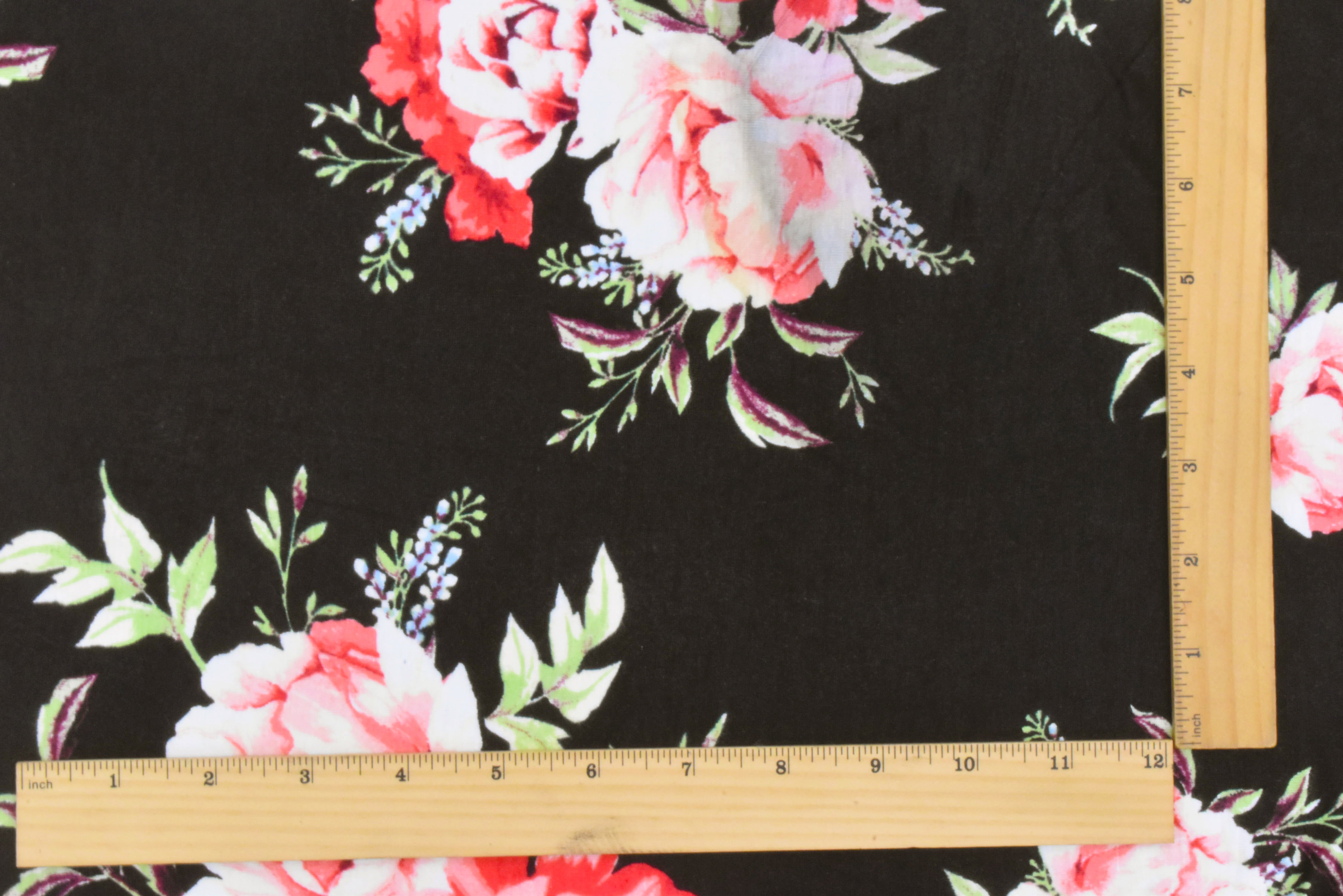Coral Red-Black-Multi Floral Printed Rayon Stretch Jersey Knit Fabric